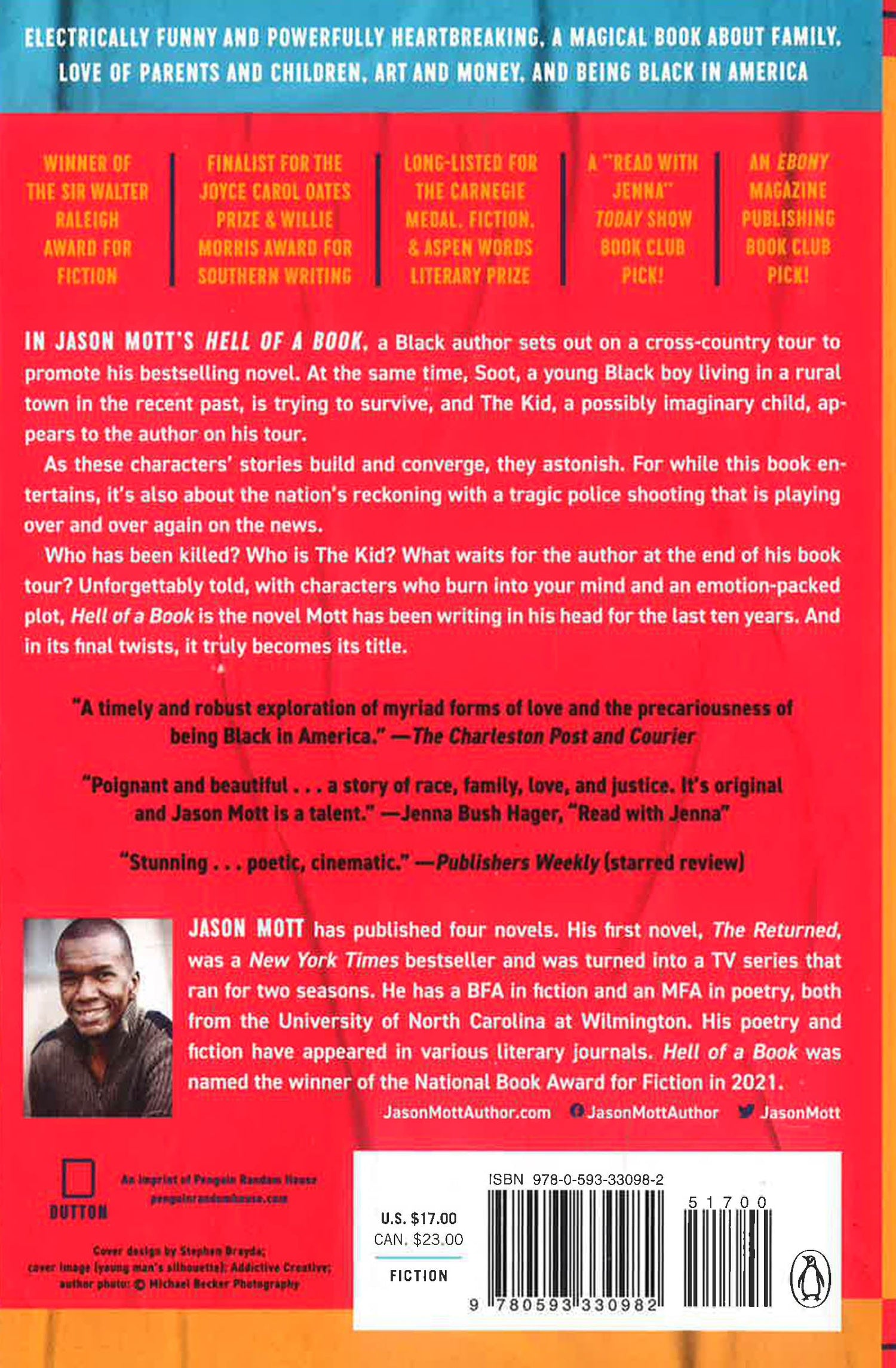 Who has been killed? Who is The Kid? Will the author finish his book tour, and what kind of world will he leave behind? Unforgettably told, with characters who burn into your mind and an electrifying plot ideal for book club discussion, Hell of a Book is the novel Mott has been writing in his head for the last ten years. And in its final twists, it truly becomes its title.