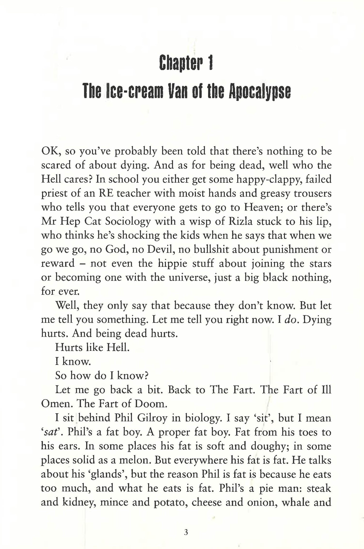 Many sixteen-year-old boys think that life is Hell; for Conor it really is. Ignominiously run over by an ice cream van, Conor is sent Down There, although he thinks he's committed no worse crime than winding up his sister and teasing the fat kid at school. To his surprise, Conor discovers that every inhabitant is in his own personal version of Hell. No pointy pitchforks or consuming hellfire for Conor, but an unutterably boring life in a room stuffed full of ancient books of philosophy, with a radio continually playing erudite documentaries or classical music. Conor foresees eternal damnation by tedium. Then it occurs to Conor that his personal vision of Hell might just be someone else's vision of Heaven - and vice versa! Desperate to discover his after-life opposite, and try to swap places, Conor sets out on a filthy, frightening and unpredictable journey, accompanied by his repulsive dog, Scrote, an unreliable demon and a cross-dressing Viking. On his travels Conor discovers that in this infernal place not only are souls being separated from bodies, they are being destroyed. Discovering how to reverse this process could be the most powerful idea Conor - or anyone - has ever had.