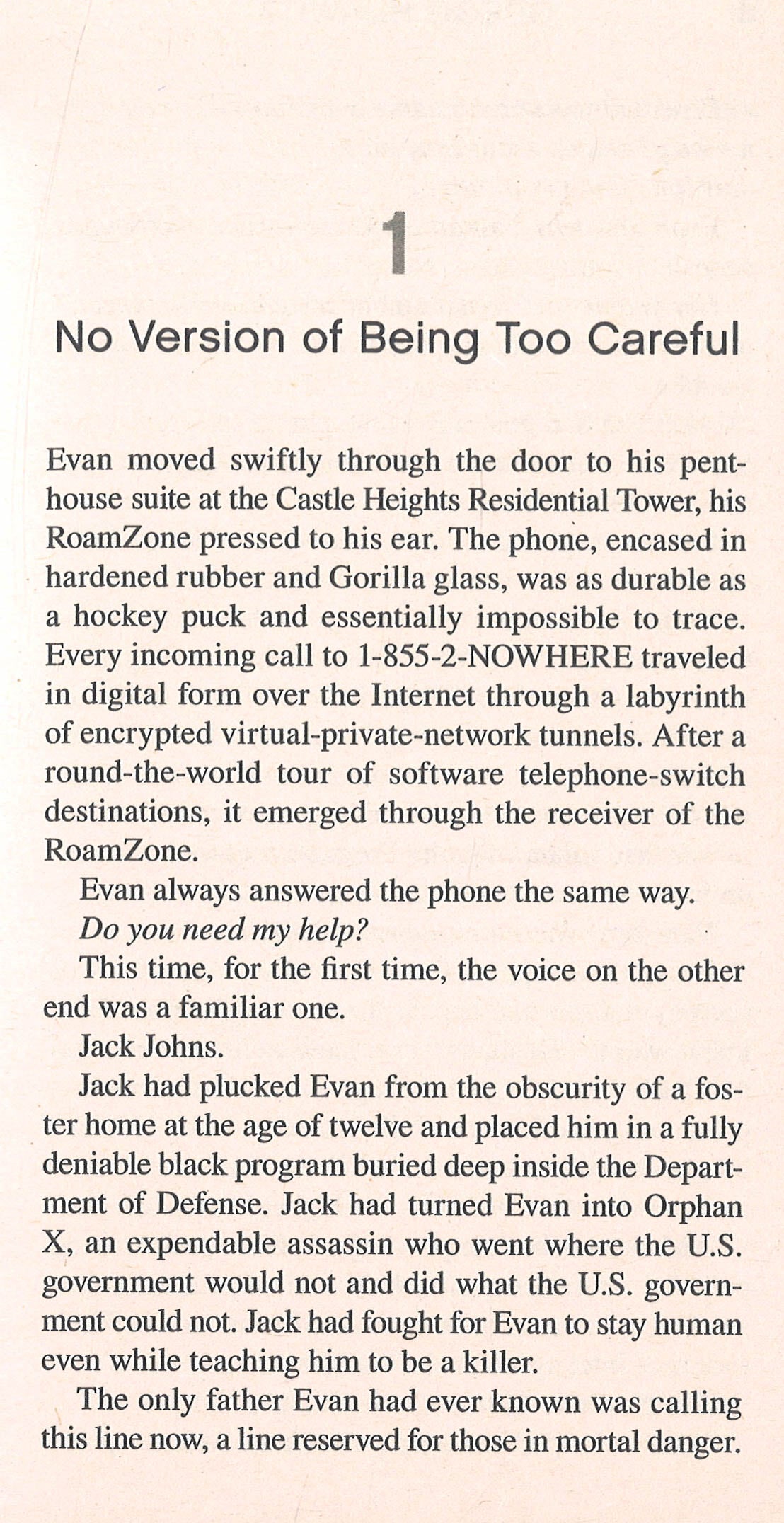 His name is Evan Smoak. Taken from a group home at age twelve, he was raised and trained as an off-the-books government assassin: Orphan X. After breaking with the Orphan Program, Evan disappeared and reinvented himself as the Nowhere Man, a man spoken about only in whispers and dedicated to helping the truly desperate. Now, the person in need of help is Jack Johns, the man who raised and trained him, and the only father Evan has ever known. Secret government forces are busy trying to scrub the remaining assets and traces of the Orphan Program and they have finally tracked down Jack. With little time remaining, and an elusive new enemy on his trail, Jack gives Evan his last assignment: to find and protect his last protégé and recruit for the program--or die trying. . .