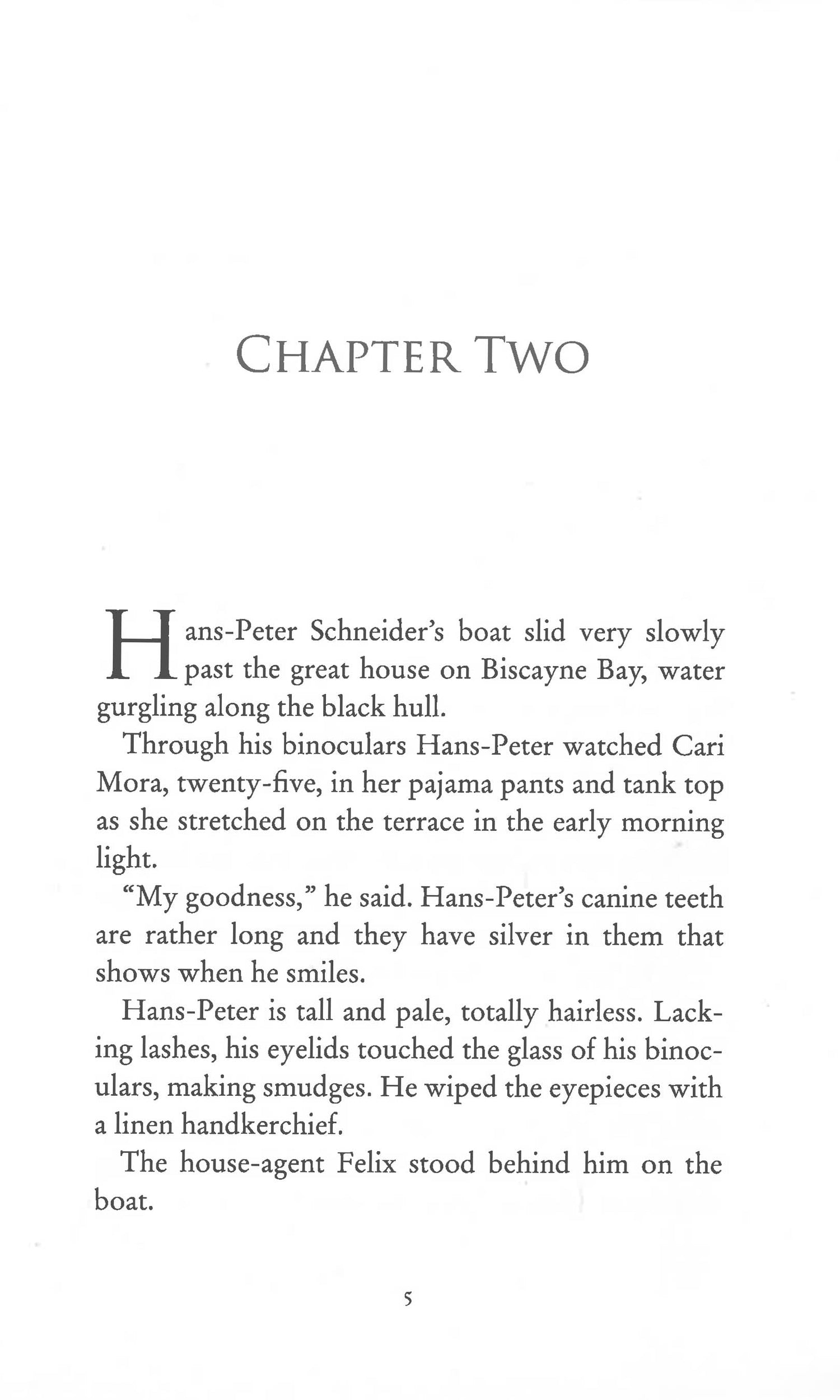 Cari Mora, caretaker of the house, has escaped from the violence in her native country. She stays in Miami on a wobbly Temporary Protected Status, subject to the iron whim of ICE. She works at many jobs to survive. Beautiful, marked by war, Cari catches the eye of Hans-Peter as he closes in on the treasure. But Cari Mora has surprising skills, and her will to survive has been tested before.