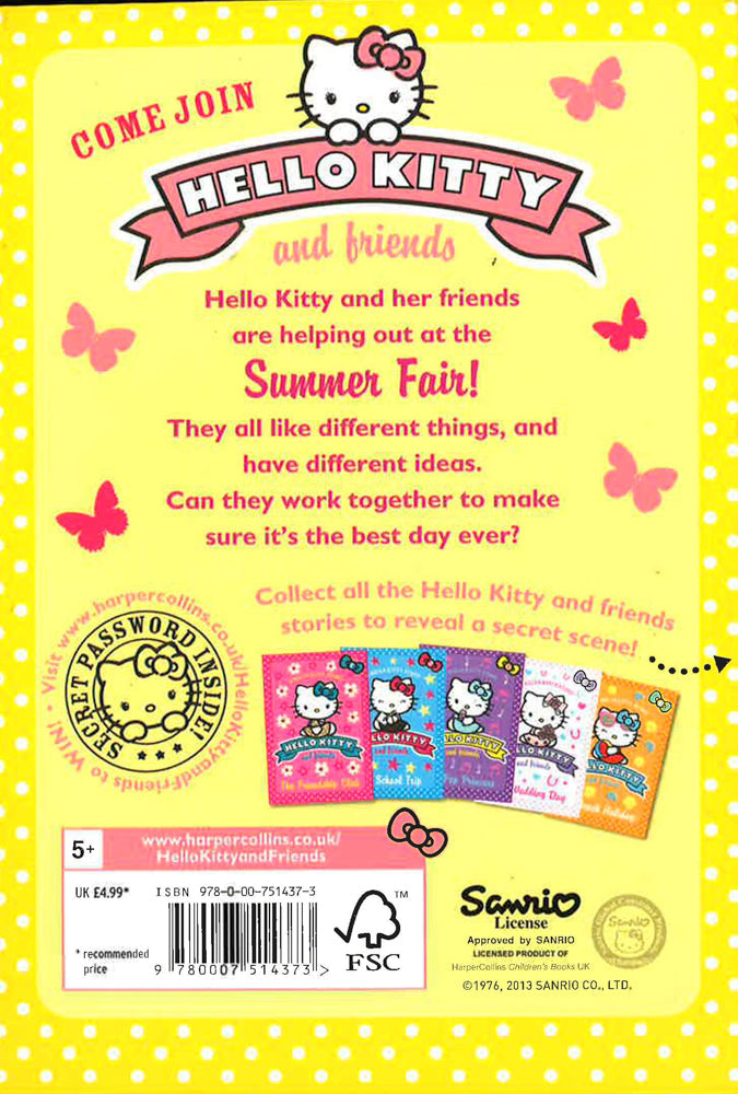 Everyone's favourite world-famous fashion icon, HELLO KITTY, is starring in her very own fiction series! Come join Hello Kitty and her friends in a brand new series all about fun and friendship! Hello Kitty and her friends are helping out at the Summer Fair! They all like different things, and have different ideas.Can they work together to make sure it's the best day ever? Each book in the series will be a collectible adventure with a fun lesson about how to be a great friend.
