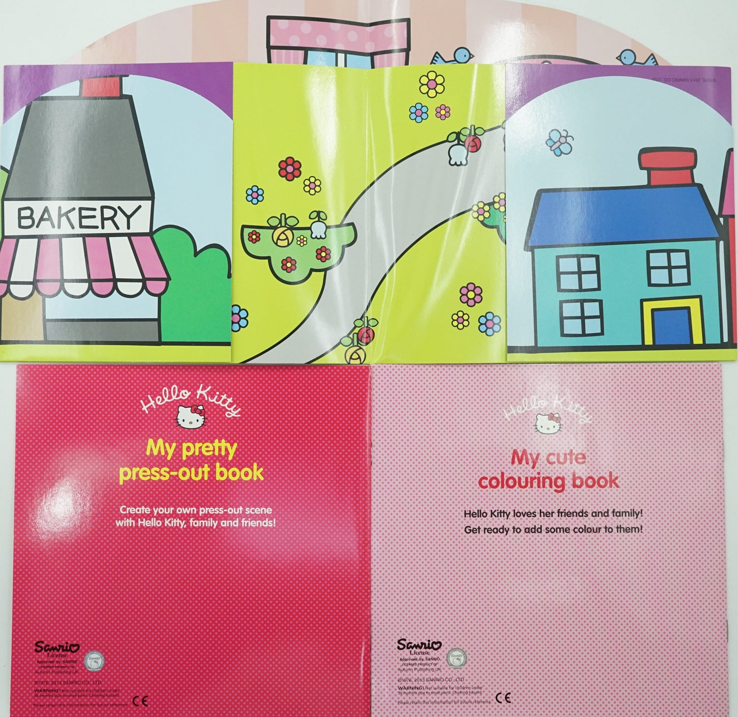 This kit is filled with press-out and colouring fun! Enjoy Hello Kitty's wonderful world with: a colouring book,lots of press-out characters, a double-sided, fold-out playscene, loads of decorative stickers!