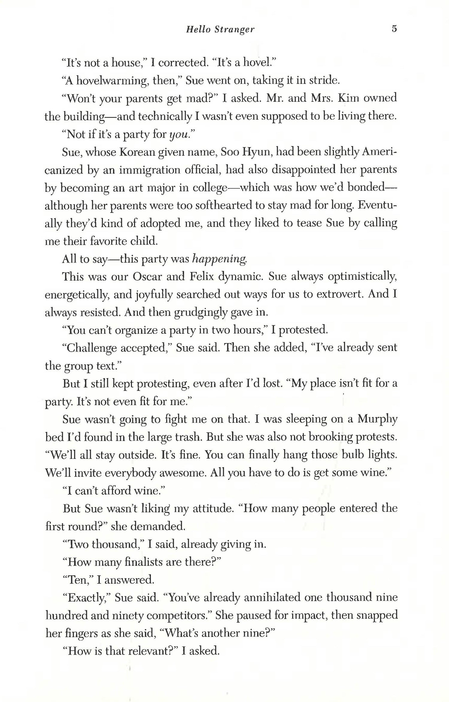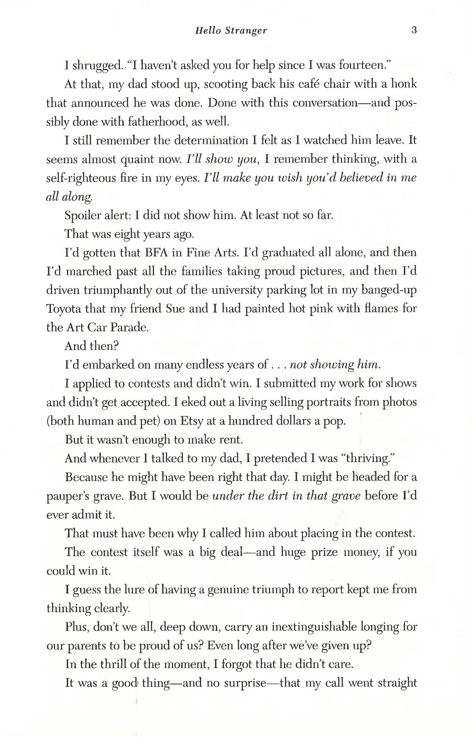 "With its emphasis on its central character, combined with its "swoony" romance, "Hello Stranger" is a hit. Sadie is everything you could want in a protagonist -- the right amount of quirky, sunshiney and stubborn, and the men she's in love with are equally fascinating. All the side characters provide humor and comfort, and even those characters who you aren't really supposed to like are annoyingly intriguing and captivating. Center created a brilliant cast of characters, set to a plot that's sure to keep you reading." --Michigan Daily