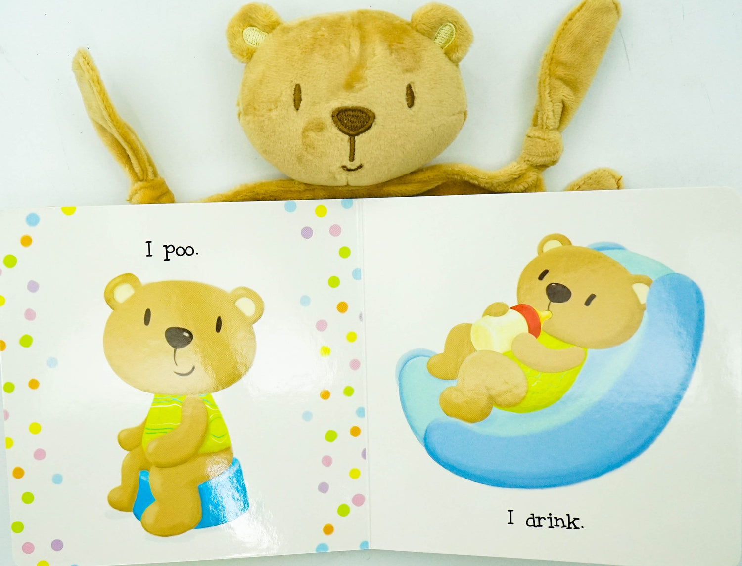 Here's a charming, illustrated board book set that comes with an exceptionally soft, combination blanket and toy shaped just like a teddy bear. Babies develop a special attachment to these cuddly blanket toys that are designed with little hands in mind. Say hello and learn all about Teddy's day--filled with fun and games, laughing and crying, waking up and going to bed, and more. Babies will love listening to these stories and playing with their very special teddy bear blanket. Soon enough, they won't leave home without them!