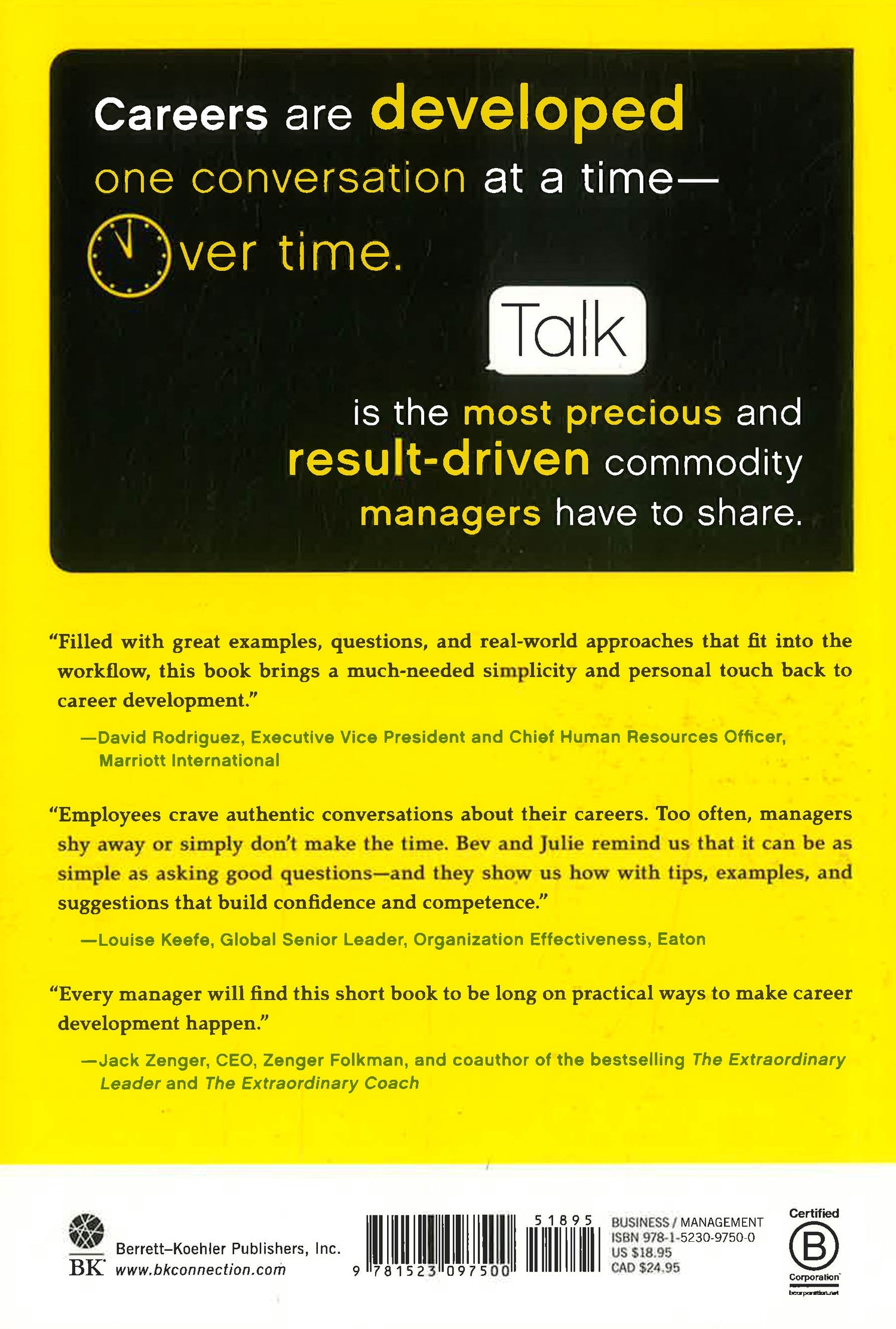Study after study confirms that career development is the single most powerful tool managers have for driving retention, engagement, productivity, and results. But most managers feel they just don't have time for it. This book offers a better way: frequent, short conversations with employees about themselves, their goals, and the business that can be integrated seamlessly into the normal course of business.