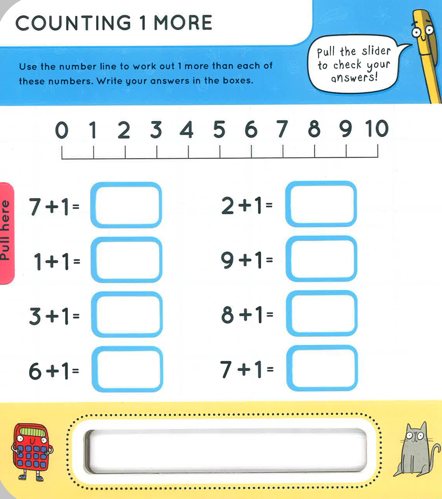 The magic of this workbook lies in its simplicity and interactivity. Each page features math questions that kids can effortlessly dive into. Equipped with an easy-pull slider mechanism, children can write their answers in the designated boxes and, with just a simple slide, check if they got it right! This dynamic, hands-on approach turns math practice into an exciting game that your child will want to play again and again.