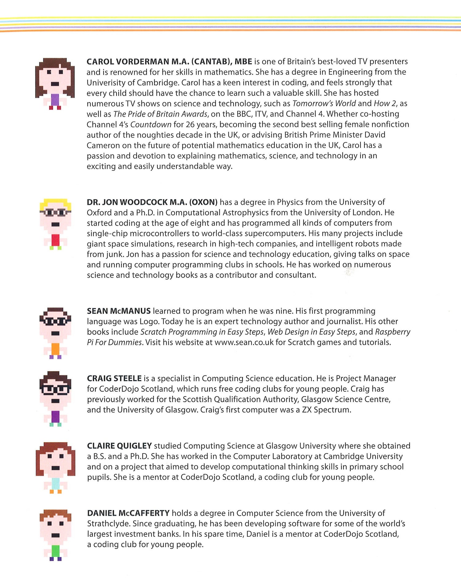 Take your kids from browsing to building the web with the latest in DK's award-winning Help Your Kids series: Help Your Kids With Computer Coding. Computer programming is one of the fastest-growing industries and highest paid college degrees, and learning to code promotes a way of thinking helpful for every budding brain. Yet 9 out of 10 schools don't even offer computer science classes to students, according to code.org. Help correct this disparity by introducing your kids to the world of computer programming early, with a fun and approachable method. This book begins by introducing the essential concepts of programming with simple instructions, and without specialized computer lingo. Fun projects throughout let kids start putting their computer skills into practice and build their own code using Scratch programming and Python, the two most popular languages. Also included are profiles on coding stars and insights in technology such as the Raspberry Pi mini computer. In typical DK fashion, colorful graphics and step-by-step instructions assist readers in starting to think like their computers.