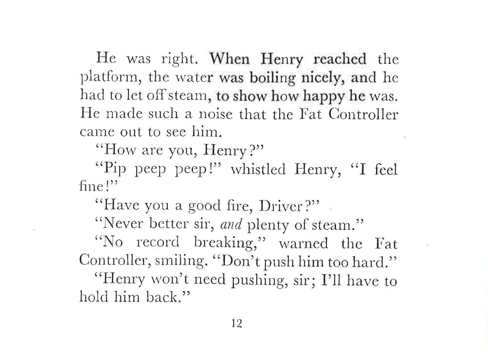 Eight volumes from the original Railway Series. Each book contains an exciting illustrated adventure.Henry the Green Engine has now recovered from his silly habit of staying inside tunnels whenever it rains, but he is still causing trouble to that strict but kind-hearted Fat Controller. All turns out well, however, and Henry has new and refreshing adventures with his fellow engines Thomas, Gordon, Edward, James and Percy.