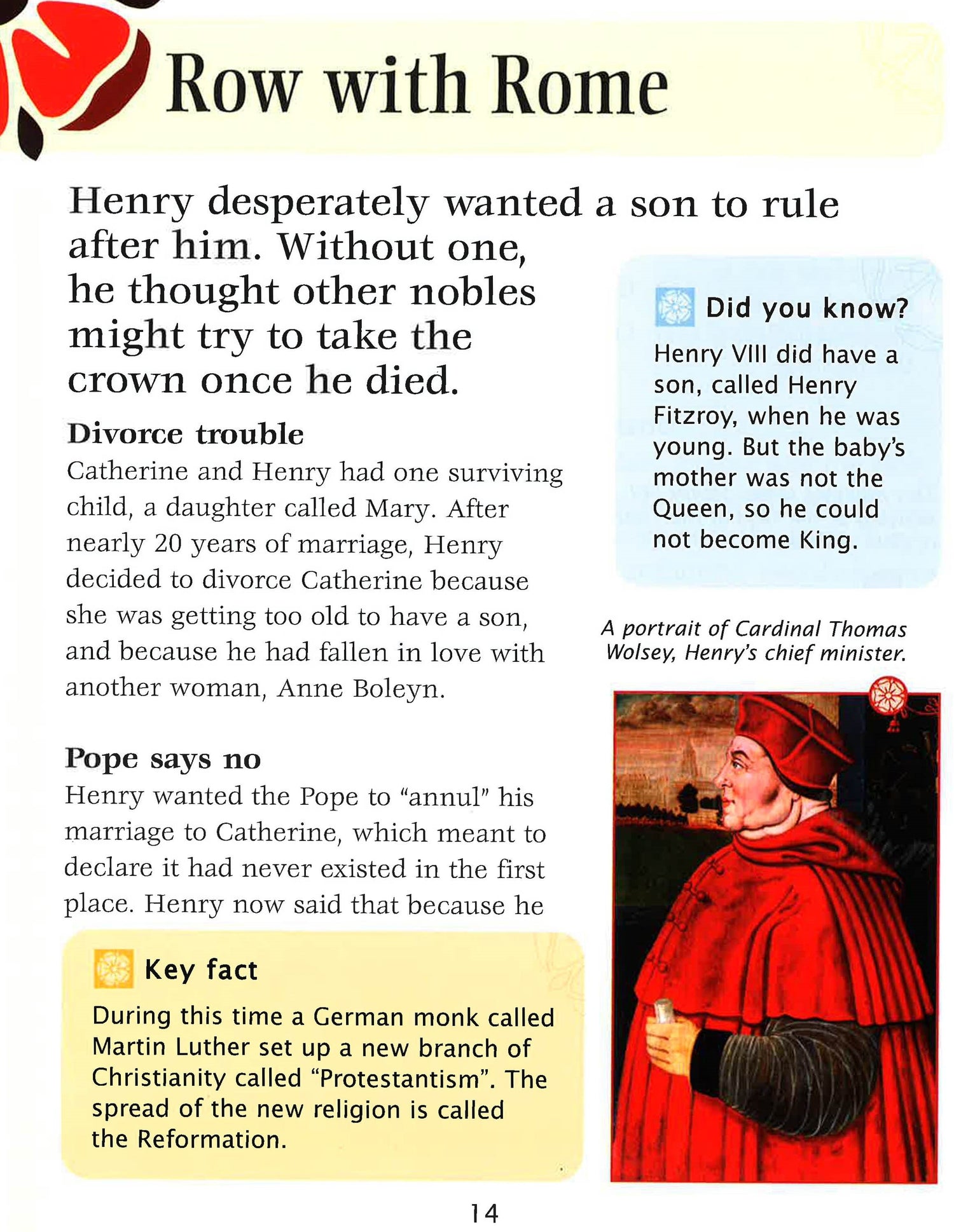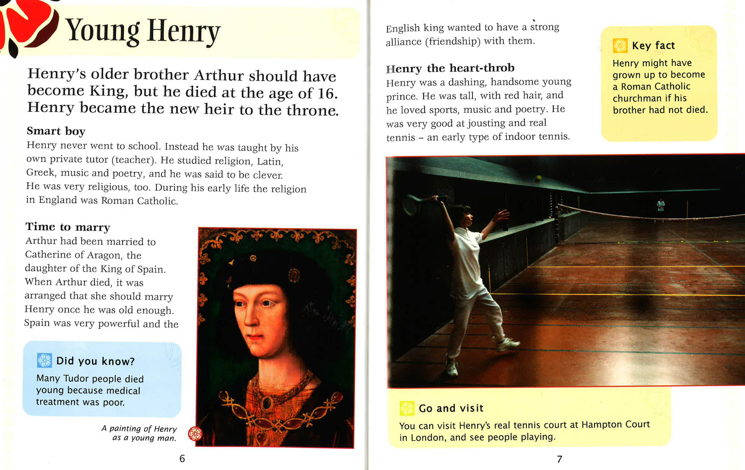 Suitable for Key Stage 2, Discover the Tudors: Henry VIII looks at aspects of the life of one of Britain's most famous monarchs, including his early life, his six wives, split with Rome, relations with Thomas More and Cardinal Wolsey and the dissolution of the monasteries.