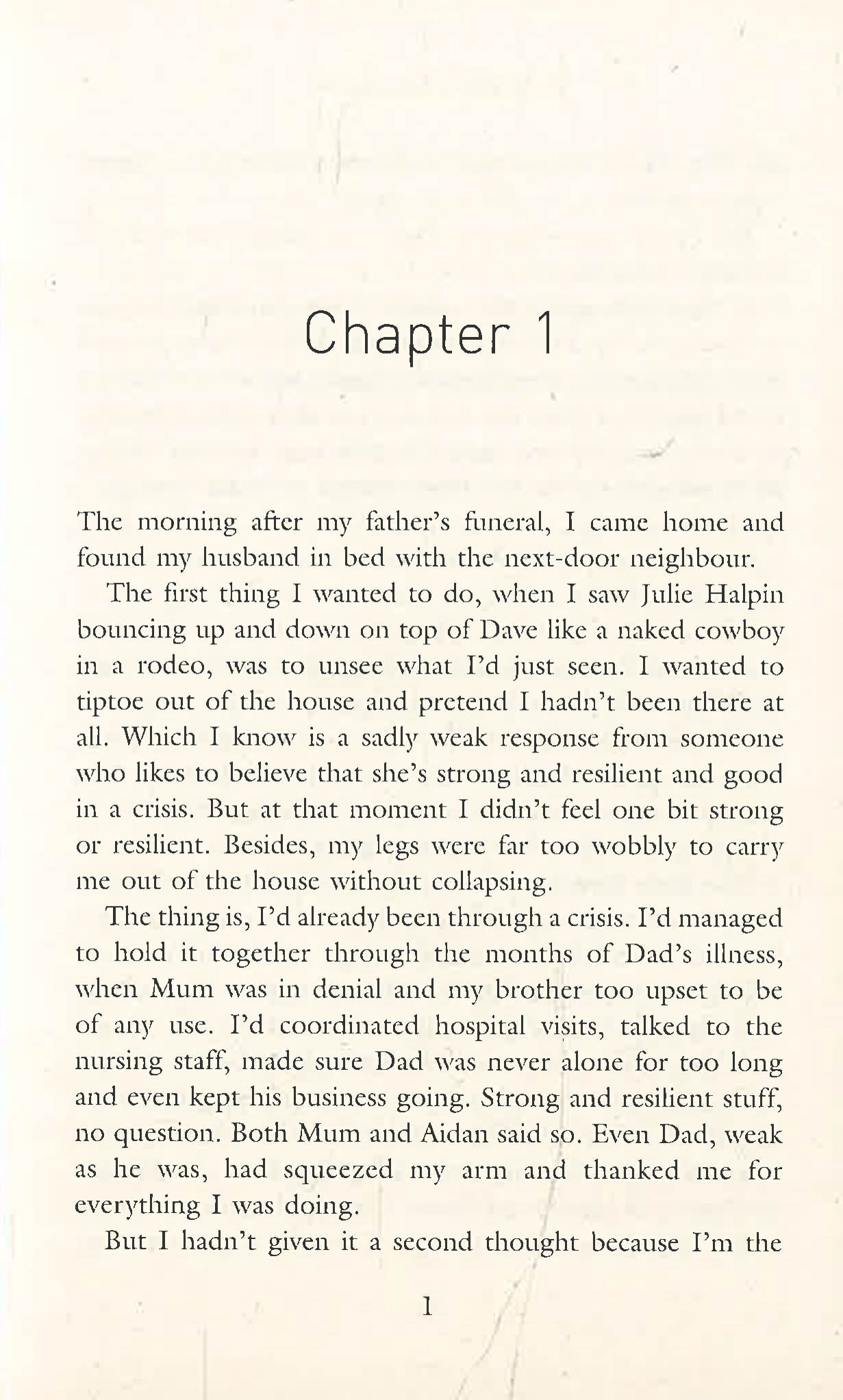 Until the day she comes home unexpectedly, and finds Dave in bed with their attractive, single neighbour.