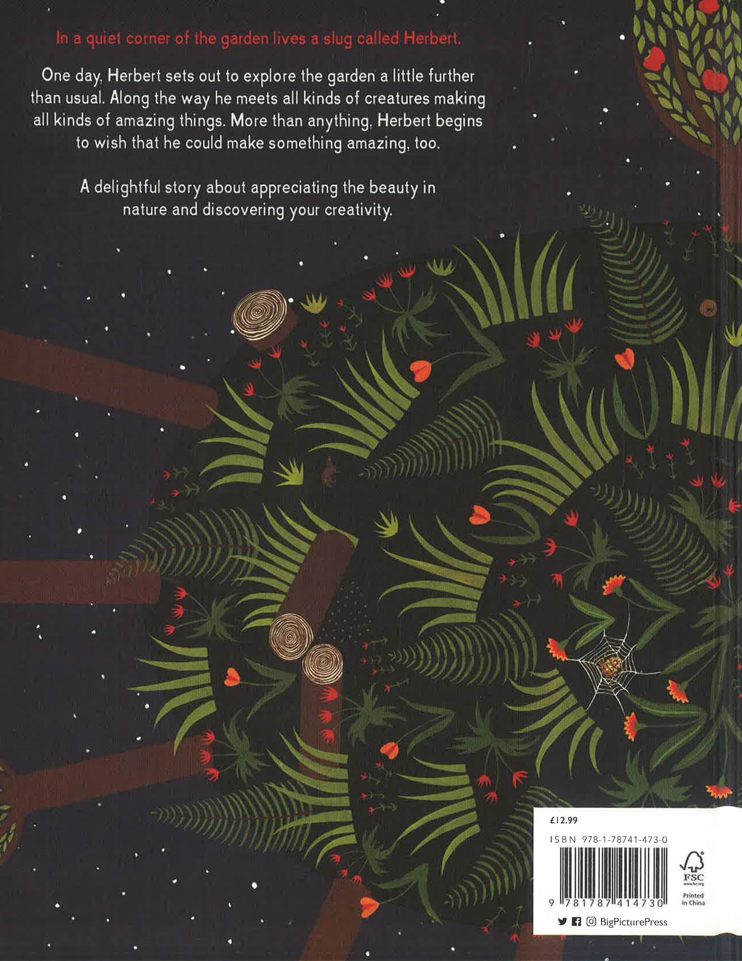 Each creature in the garden has something special to offer, but what about a slug? Slow, slimy and greedy, Herbert wishes he could weave shimmering webs like spiders, or create wonderful underground worlds like ants. But when his lonely night-time wanderings through the garden take him up into the treetops, he and the other creatures are astonished at the beauty he has created. Spotting spreads plus helpful hints on how to look after the creatures in your own garden add to this garden-inspired tale.