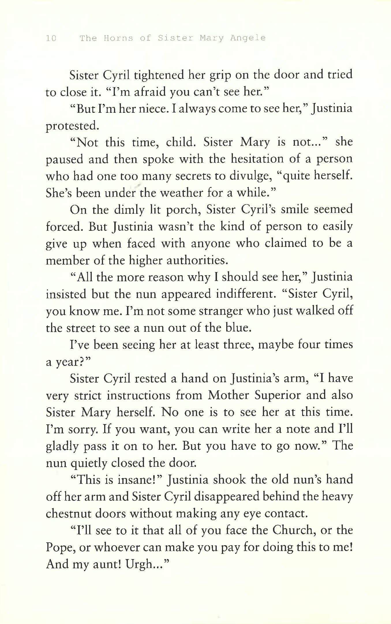 It can only be a nightmare if you: Walk into a convent where Sister Mary Angele starts to grow horns. Catch Mina telling her