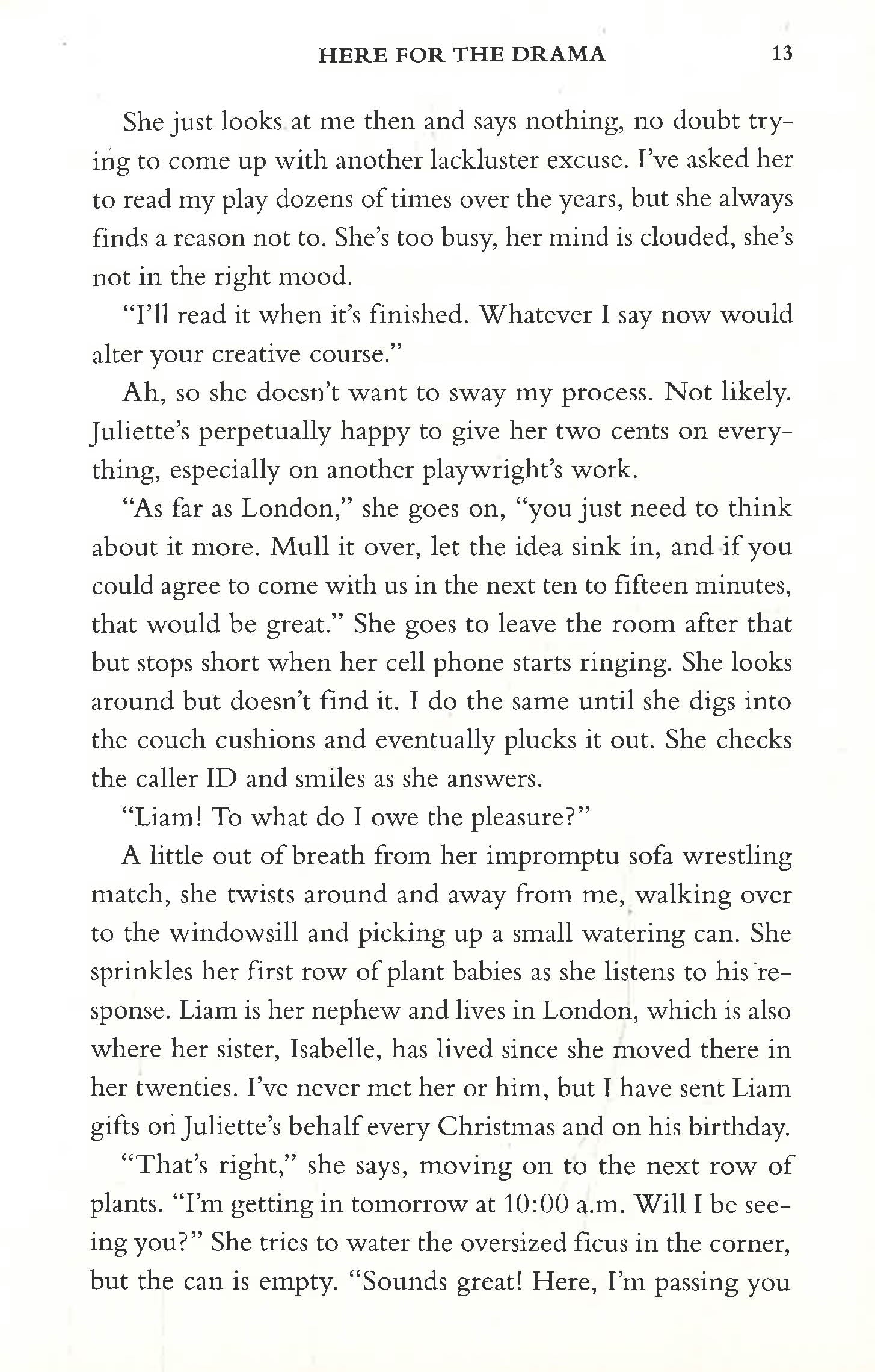 She came for a job. What she'll get is the performance of a lifetime. Aspiring playwright Winnie D'Angelo has spent the past seven years waiting in the wings, working as a personal assistant to celebrated, feminist playwright, Juliette Brassard. But when an experimental theatre company in London, England decides to stage Juliette's most renowned play, accompanying her mentor across the pond could finally be Winnie's moment in the spotlight-assuming everything goes smoothly. And with Juliette's very charming and very off-limits British (hello, hot accent!) nephew suddenly in Winnie's flustered orbit, what could possibly go wrong? Smart, handsome, and sweet, Liam is everything Winnie didn't expect from what's turning out to be an increasingly hectic work trip, but his family ties to Winnie's boss pose a serious problem. Still, Winnie is falling for him. Hard. How could she not when the guy's kisses are worthy of a thousand encores? But with Juliette stubbornly butting heads with the play's director, Winnie knows that more than anything, the show must go on, even if it comes at the expense of her own work-and her burgeoning relationship with a guy she suspects might always hold her heart, even from half a world away.