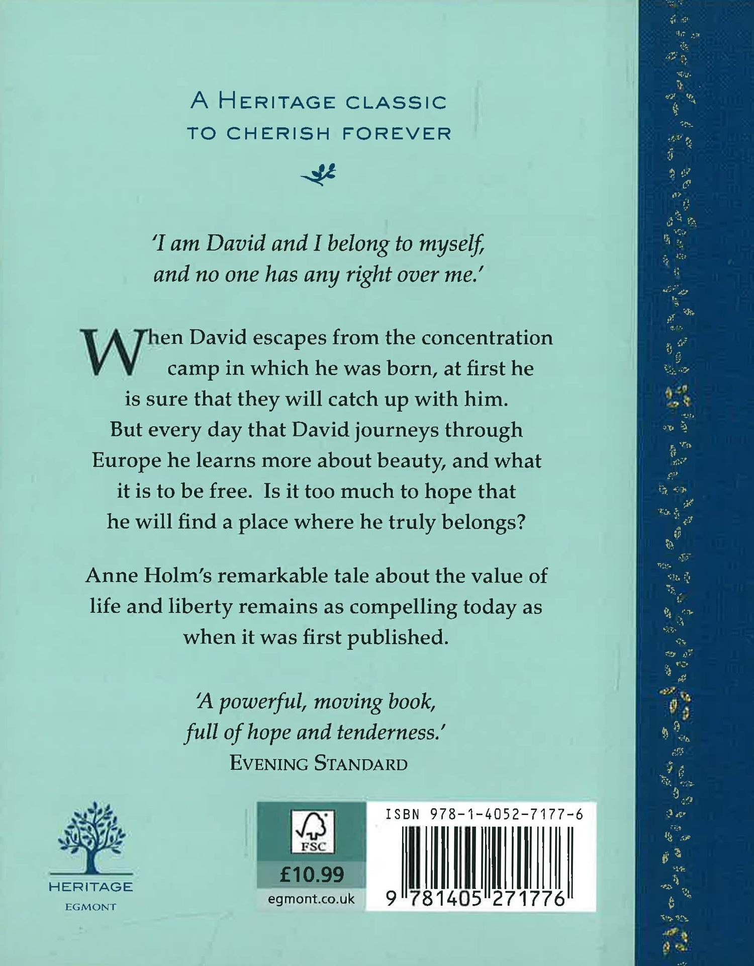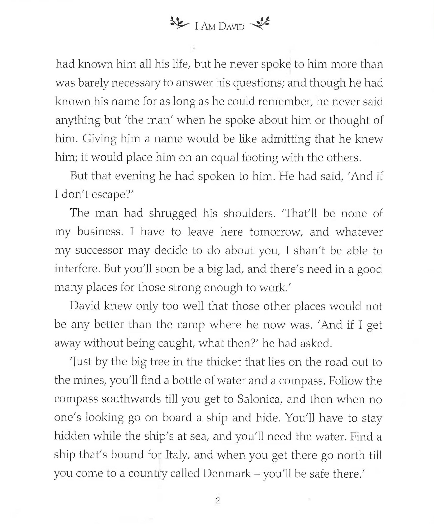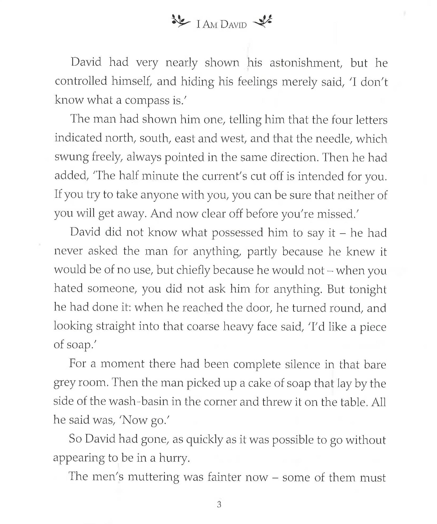 You must get away tonight,' the man had told him. David escapes from the concentration camp where he has spent his entire life and flees across Europe. He is utterly alone - who can he trust? What will await him? And all the while, how can he be sure that they won't catch up with him...This is the remarkable story of David's introduction to the world: sea, mountains and flowers, the colours of Italy, the taste of fruit, people laughing and smiling, all are new to David. David learns that his polite manner, his haunted eyes and his thin features are strange to other people. He must learn to fend for himself in this strange new world.