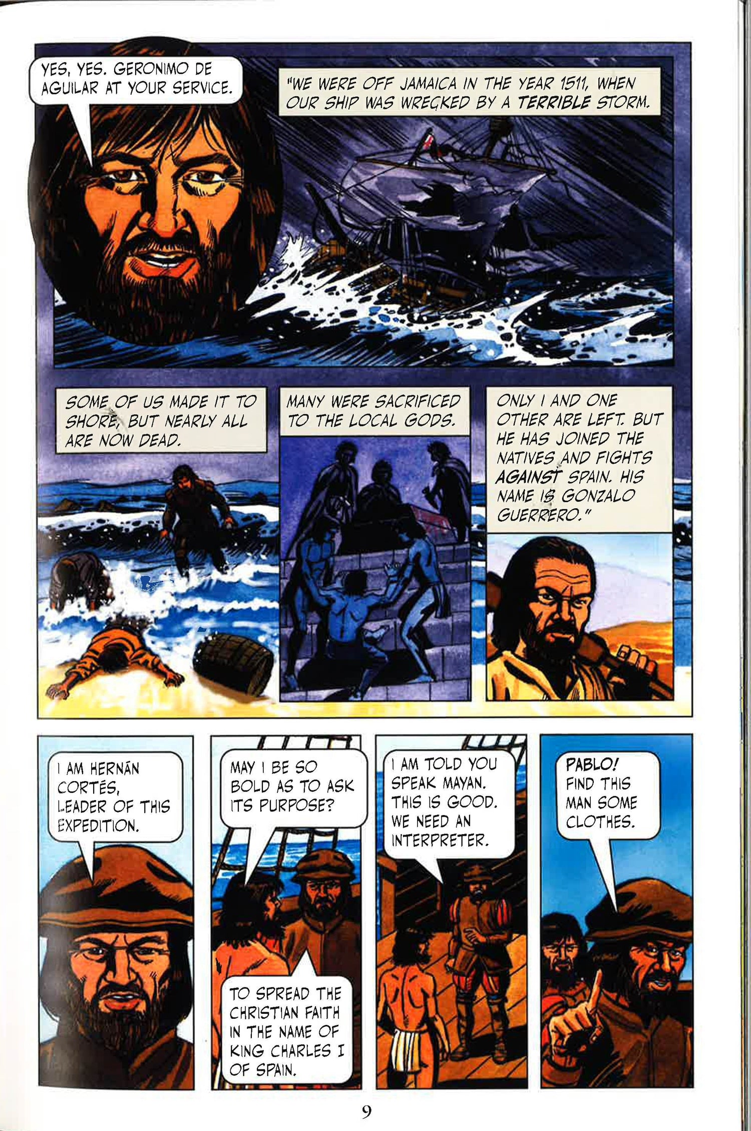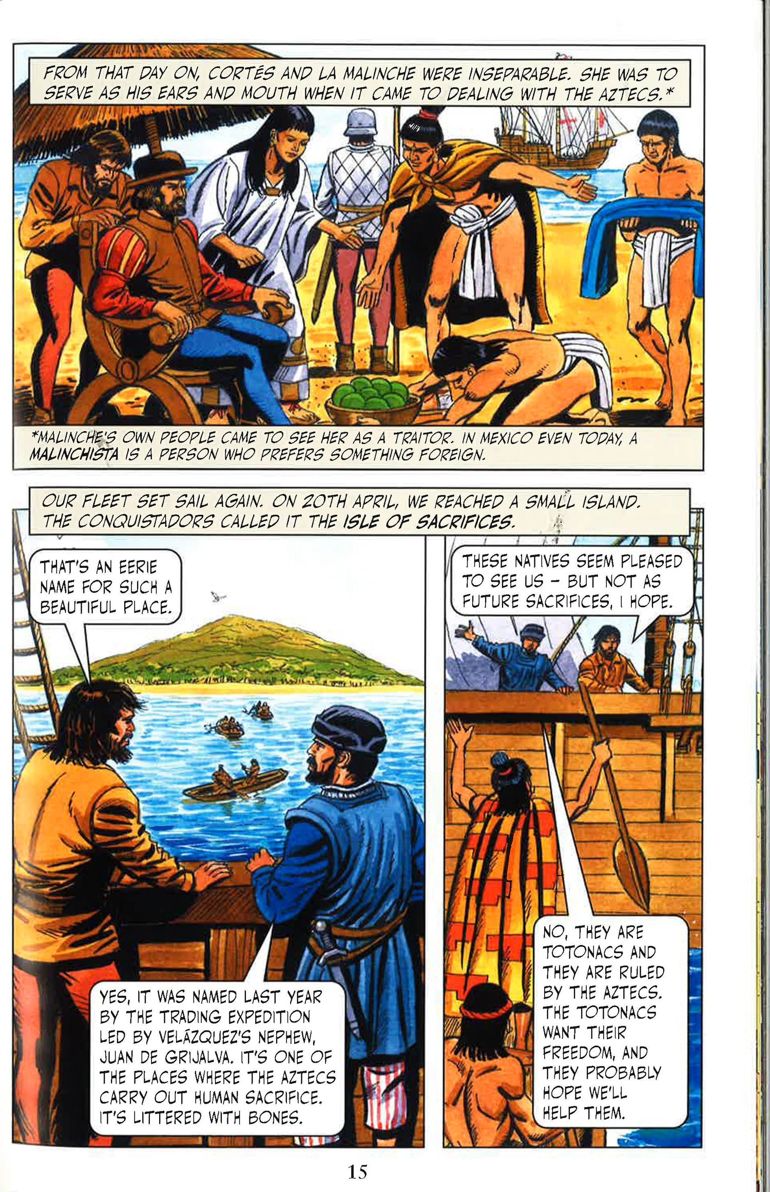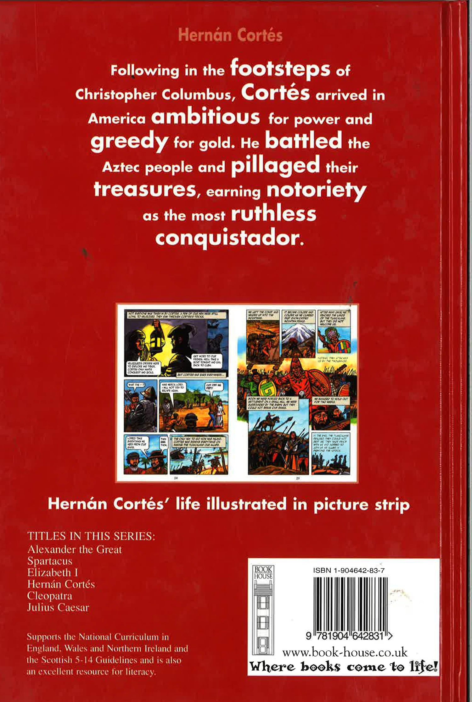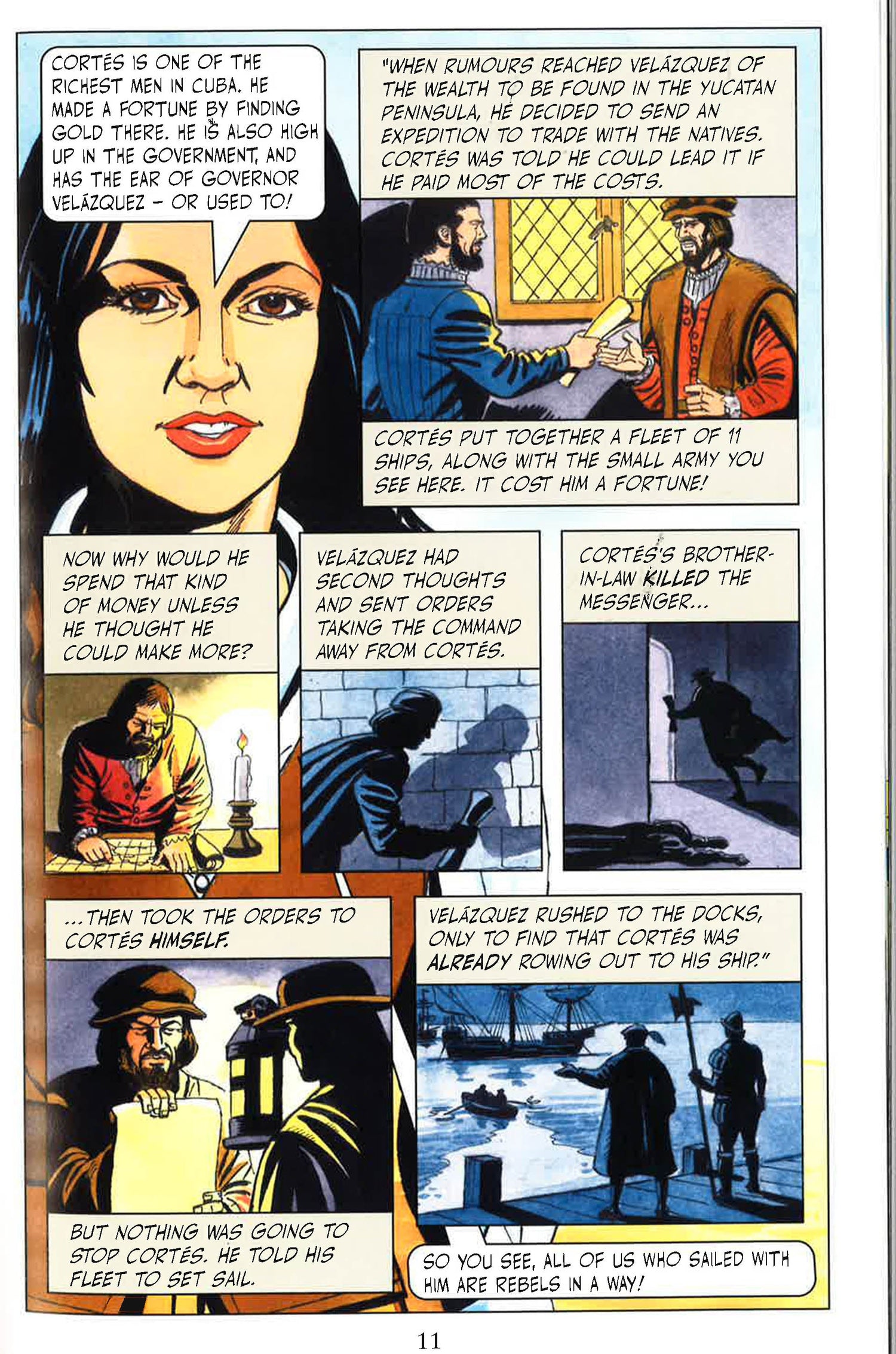 The opening pages provide historical context about the society destroyed by Cortes, and the world of colonisation he came from. The closing pages describe his fall from grace and ultimate loss of wealth.