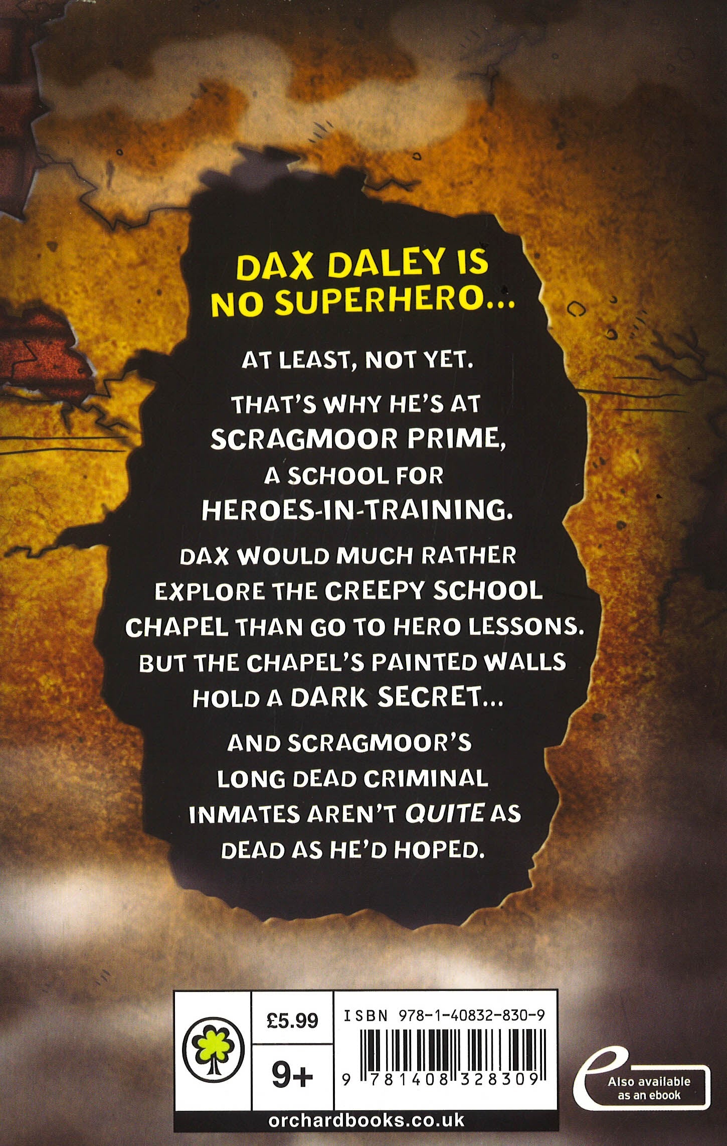 Dax Daley is no superhero.But then, neither are his other classmates. At least they're not heroes YET - that's what they're being taught at Scragmoor Prime, a school for children with special powers.Dax would much rather explore the creepy chapel outside the school grounds the one with the eerie painted people on the wall - than try to be a hero. But the chapel walls hide a dark secret... and Dax discovers that Scragmoor's previous criminal inmates aren't quite as dead as he'd hoped. * This book may have remainder mark*