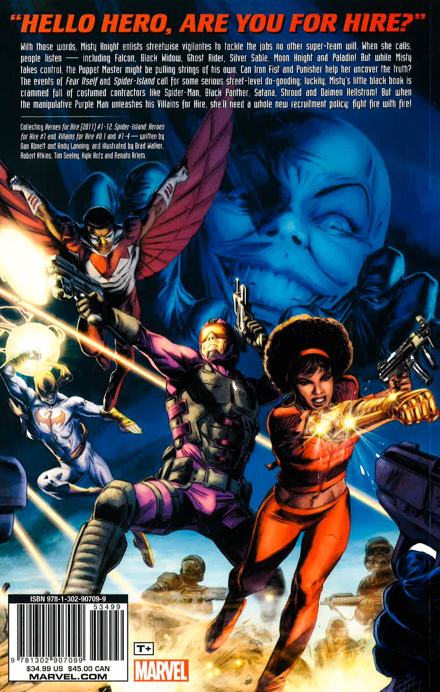 "Hello, hero, are you for hire?" With those words, Misty Knight enlists streetwise vigilantes to tackle the jobs no other super-team will. When she calls, people listen - including Falcon, Black Widow, Ghost Rider, Silver Sable, Moon Knight and Paladin! But while Misty takes control, the Puppet Master might be pulling strings of his own. Can Iron Fist and the Punisher help her uncover the truth? The events of Fear Itself and Spider- Island call for some serious street-level do-gooding - luckily Misty's little black book is crammed full of costumed contractors like Spider-Man, Black Panther, Satana, Shroud and Daimon Hellstrom! But when the manipulative Purple Man unleashes his Villains for Hire, she'll need a whole new recruitment policy: Fight fire with fire! COLLECTING: HEROES FOR HIRE (2011) 1-12; SPIDER-ISLAND: HEROES FOR HIRE 1; VILLAINS FOR HIRE 0.1, 1-4 *This book may have a remainder mark