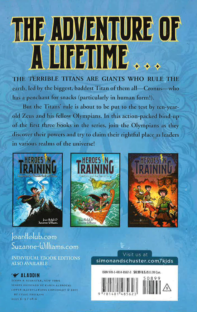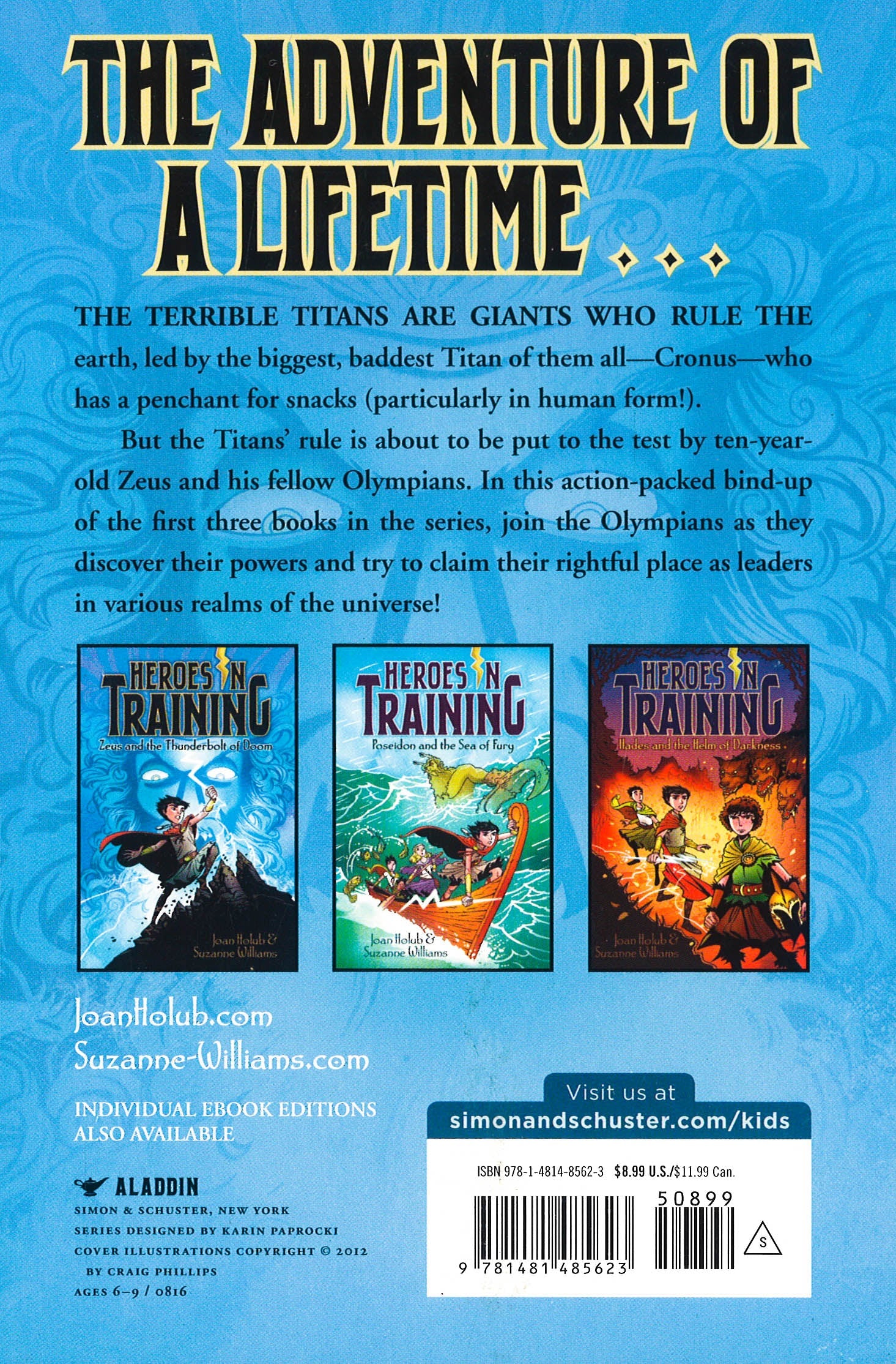 Come along for legendary adventures with the first three books in the Heroes in Training series, now available in one action-packed paperback edition! The terrible Titans are merciless giants who rule the earth, led by Cronus, the biggest, baddest Titan of them all. Cronus and his cronies have put the world into chaos - but the Titans' rule is about to be challenged by a group of young Olympians, led by ten-year-old Zeus, as they discover their powers and try to claim their rightful place as rulers in various realms of the universe. This paperback bind-up includes Zeus and the Thunderbolt of Doom , Poseidon and the Sea of Fury , and Hades and the Helm of Darkness .