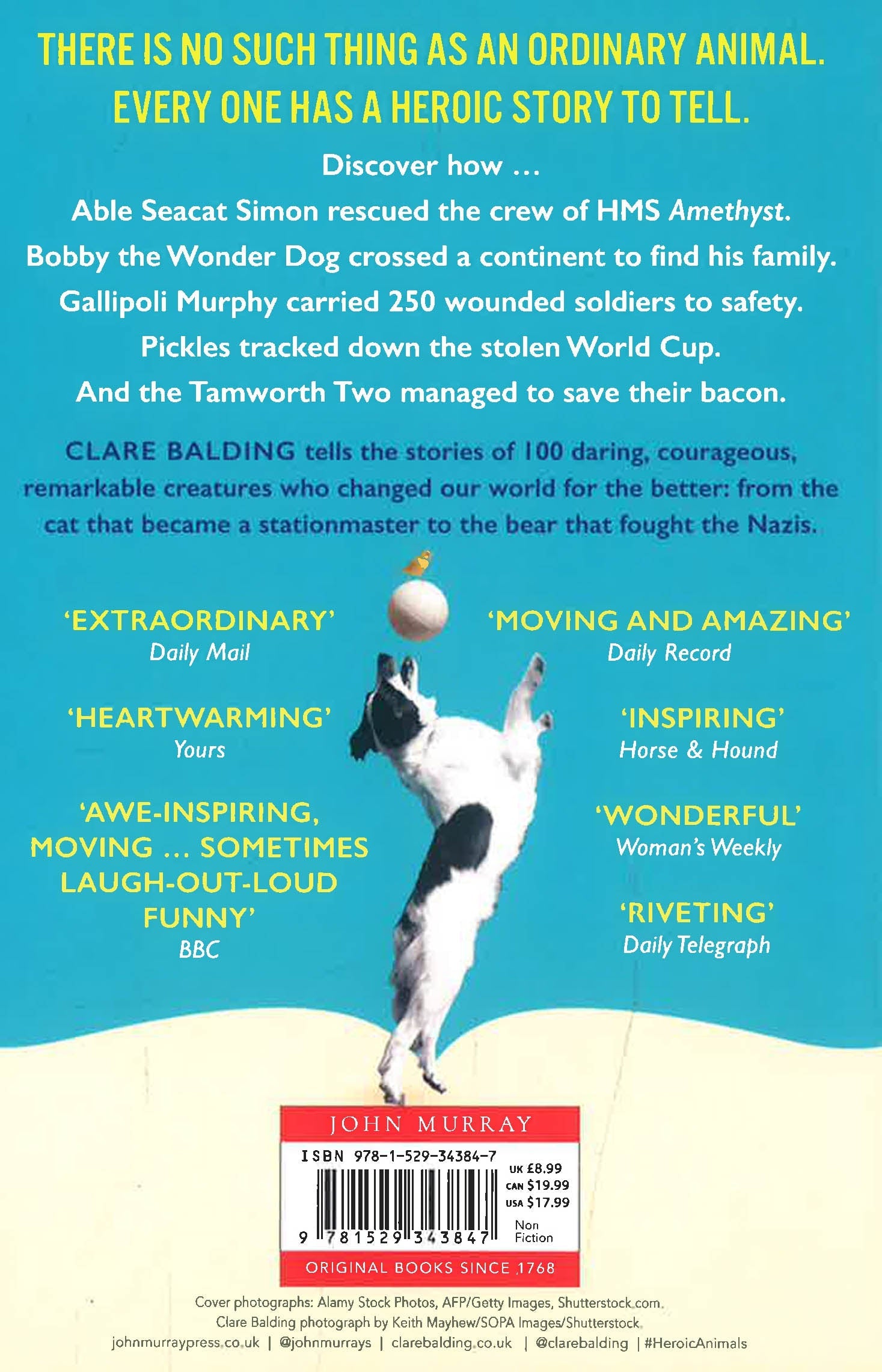 THERE IS NO SUCH THING AS AN ORDINARY ANIMAL. EVERY ONE HAS A HEROIC STORY TO TELL. Discover how . . . Able Seacat Simon rescued the crew of HMS Amethyst Bobby the Wonder Dog crossed a continent to find his family Galipolli Murphy carried 250 wounded soldiers to safety Pickles tracked down the stolen World Cup And the Tamworth Two managed to save their baconClare Balding's stories of daring, courageous, remarkable creatures who changed our world for the better: from the dog that inspired Lassie to the bear that fought the Nazis.