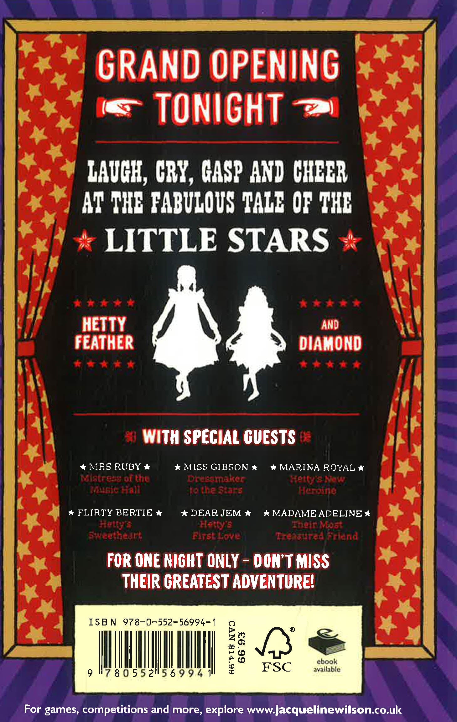 Hetty Feather has begun a new chapter in her life story. Escaping from Tanglefield’s Travelling Circus with her dearest friend Diamond, Hetty is determined to find them positions as glamorous music hall artistes.
