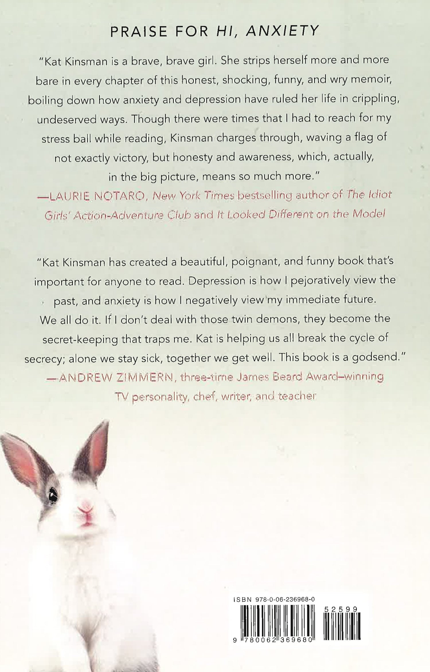A deeply personal, funny, and sometimes painful look at anxiety and its impact from writer and commentator Kat Kinsman.Feeling anxious? Can’t sleep because your brain won’t stop recycling thoughts? Unable to make a decision because you're too afraid you’ll make the wrong one? You’re not alone.In Hi, Anxiety, beloved food writer, editor, and commentator Kat Kinsman expands on the high profile pieces she wrote for CNN.com about depression, and its wicked cousin, anxiety. Taking us back to her adolescence, when she was diagnosed with depression at fourteen, Kat speaks eloquently with pathos and humor about her skin picking, hand flapping, “nervousness” that made her the recipient of many a harsh taunt. With her mother also gripped by depression and health issues throughout her life, Kat came to live in a constant state of unease - that she would fail, that she would never find love . . . that she would end up just like her mother.Now, as a successful media personality, Kat still battles anxiety every day. That anxiety manifests in strange, and deeply personal ways. But as she found when she started to write about her struggles, Kat is not alone in feeling like the simple act of leaving the house, or getting a haircut can be crippling. And though periodic medication, counseling, a successful career and a happy marriage have brought her relief, the illness, because that is what anxiety is, remains.Exploring how millions are affected anxiety, Hi, Anxiety is a clarion call for everyone - but especially women - struggling with this condition. Though she is a strong advocate for seeking medical intervention, Kinsman implores those suffering to come out of the shadows - to talk about their battle openly and honestly. With humor, bravery, and writing that brings bestsellers like Laurie Notaro and Jenny Lawson to mind, Hi, Anxiety tackles a difficult subject with amazing grace.