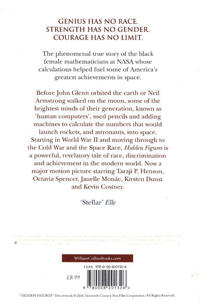 #1 New York Times Bestseller NOW A MAJOR MOTION PICTURE Oscar Nominated For Best Picture and Best Adapted Screenplay Set amid the civil rights movement, the never-before-told true story of NASA's African-American female mathematicians who played a crucial role in America's space program. The Top 10 Sunday Times Bestseller NOW A MAJOR MOTION PICTUREOscar Nominated For Best Picture and Best Adapted Screenplay Set amid the civil rights movement, the never-before-told true story of NASA's African-American female mathematicians who played a crucial role in America's space program. Before Neil Armstrong walked on the moon, a group of professionals worked as `Human Computers', calculating the flight paths that would enable these historic achievements. Among these were a coterie of bright, talented African-American women. Segregated from their white counterparts, these `colored computers' used pencil and paper to write the equations that would launch rockets, and astronauts, into space. Moving from World War II through NASA's golden age, touching on the civil rights era, the Space Race, the Cold War, and the women's rights movement, Hidden Figures interweaves a rich history of mankind's greatest adventure with the intimate stories of five courageous women whose work forever changed the world.