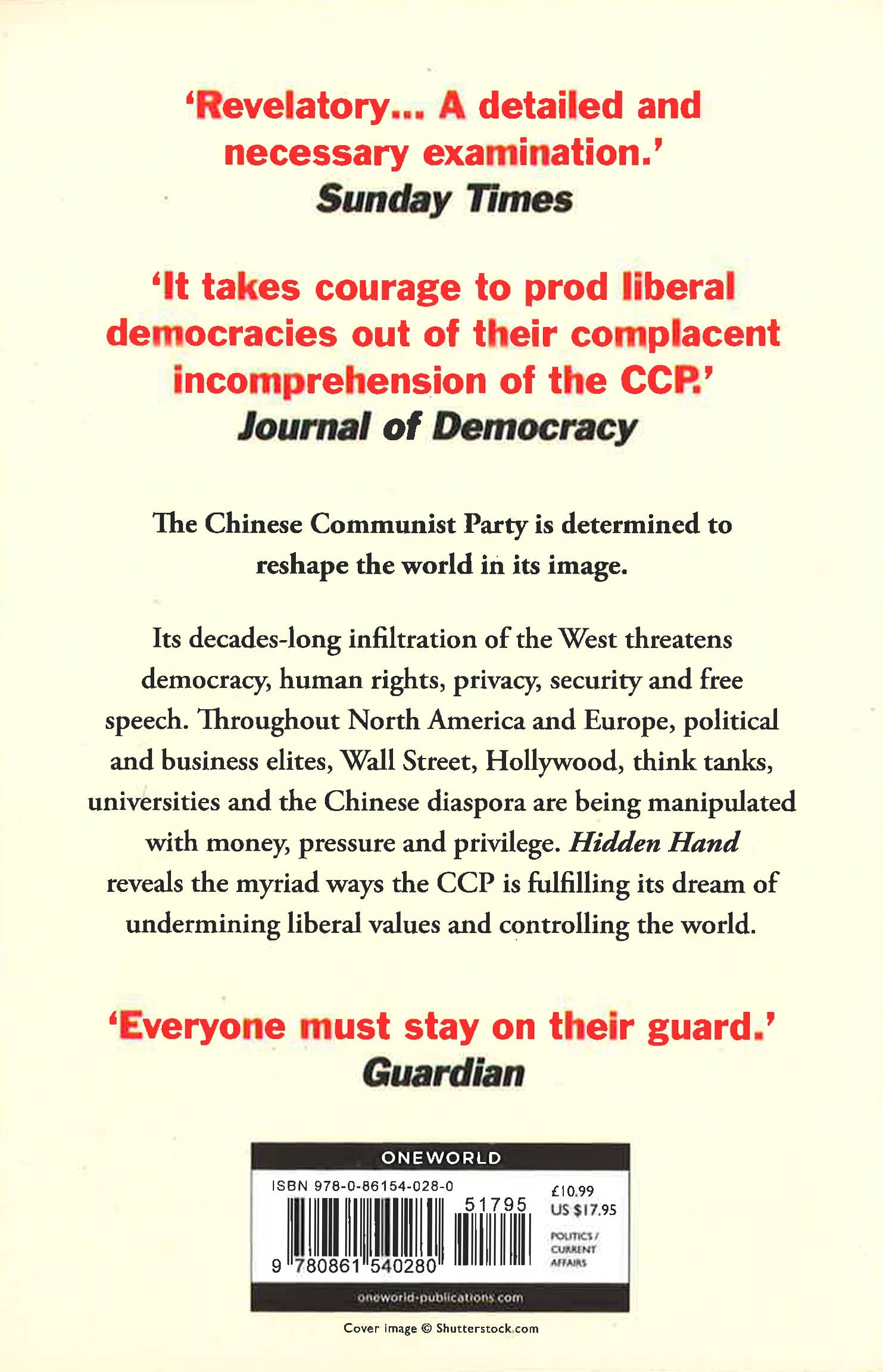 The Chinese Communist Party is determined to reshape the world in its image. The party is not interested in democracy. It sees only a bitter ideological struggle with the West, dividing the world into those who can be won over, and enemies. Many political and business elites have already been lured to their corner; others are weighing up a devil’s bargain. Through its enormous economic power and covert influence operations, China is now weakening global institutions, aggressively targeting individual corporations, and threatening freedom of expression from the arts to academia. At the same time, Western security services are increasingly worried about incursions into our communications infrastructure. In a landmark study combining meticulous research with unique insights, Hidden Hand exposes the Chinese Communist Party’s global program of subversion, and the threat it poses to democracy. We have already missed too many warning signs—now it is time to w
