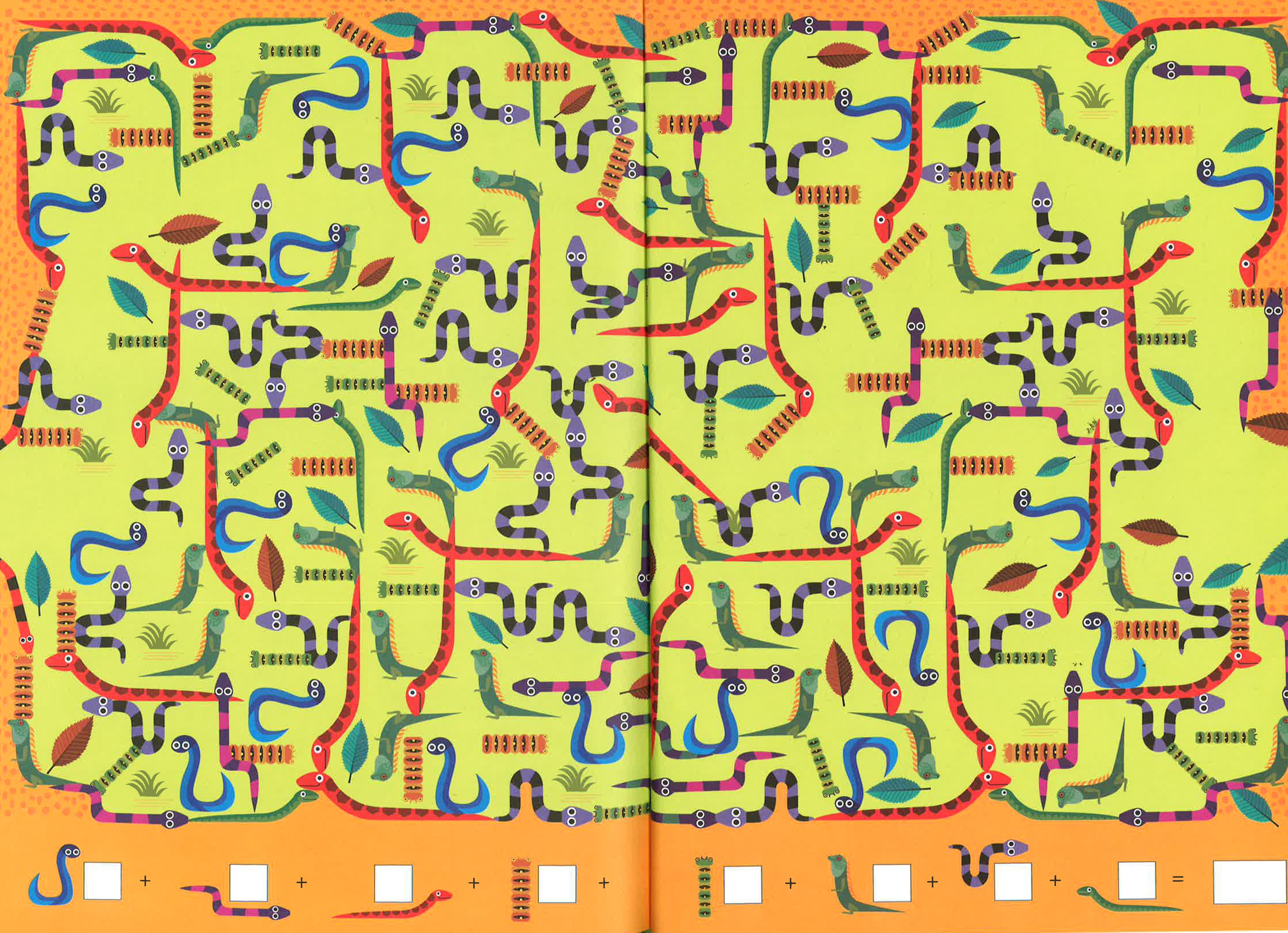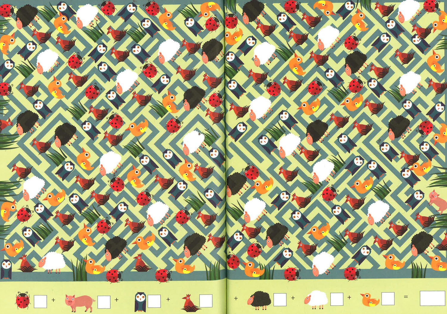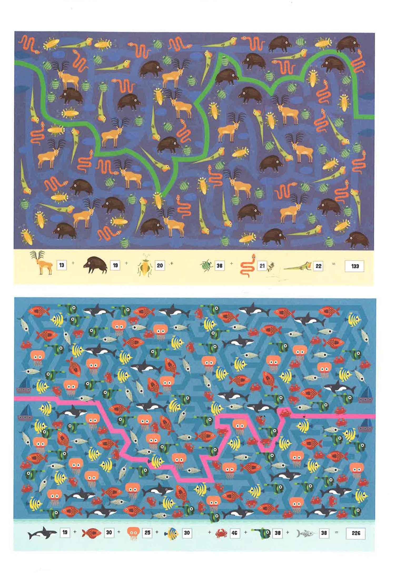 How many animals can YOU find in these big, colorful illustrations? Take a look and see! From sharp-teethed sharks in the sea to lions in the savannah and owls in the forest: animals are hidden everywhere! Keen-eyed kids can show off their counting and observational skills as they pore through a wonderful menagerie in Agnese Baruzzi?s lushly designed environments. On the side of every spread there are small drawings of all the animals in the picture plus a box where children can write down the number of each one they?ve found.