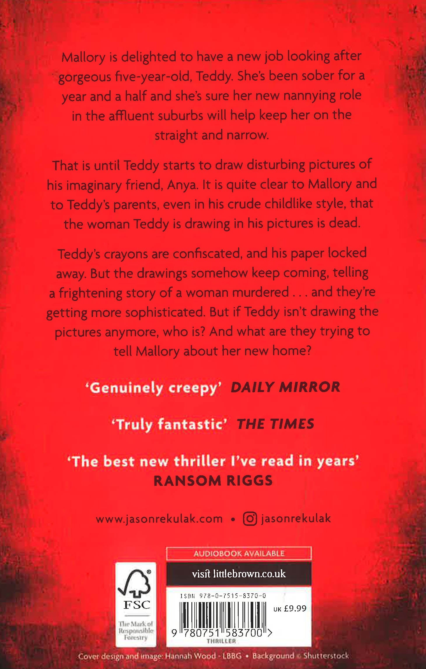 That is until Teddy starts to draw disturbing pictures of his imaginary friend, Anya. It is quite clear to Mallory and to Teddy's parents, even in his crude childlike style, that the woman Teddy is drawing in his pictures is dead.