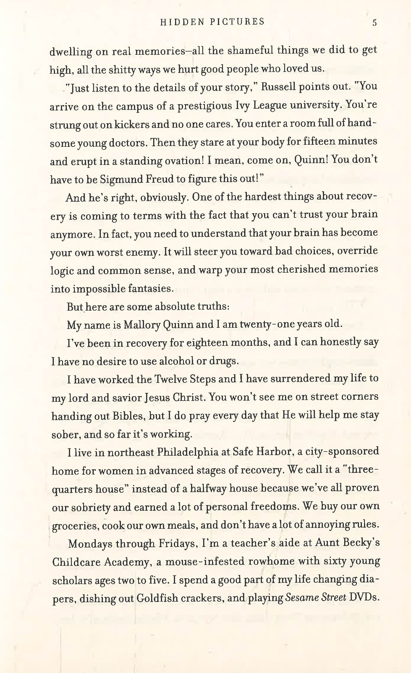 Mallory is delighted to have a new job looking after gorgeous four-year-old, Teddy. She's been sober for a year and a half and she's sure her new nannying role in the affluent suburbs will help keep her on the straight and narrow.