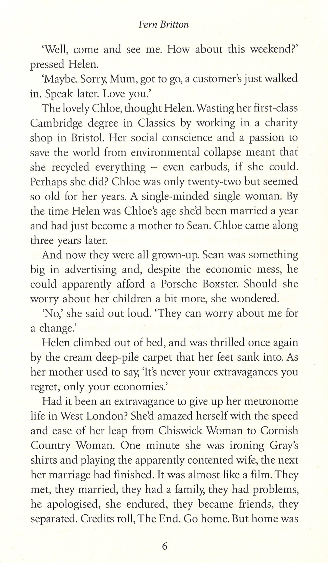 Fern's warmth, insight and humour combine to deliver a hugely enjoyable novel that will speak to women everywhere. Helen Merrifield has said goodbye to her philandering husband and her swish West London house to live in an idyllic country cottage in the heart of a postcard-perfect village in Cornwall. Putting the past behind her, Helen throws herself into country life and soon makes a new set of eccentric friends. To her surprise, Helen finds herself the love-interest of two very different men: the kind, gentle, desperate-for-love-and-sex Simon, and the darkly enigmatic local historian Piran. Whilst Helen is getting to grips with her new life, her oldest and dearest friend, Penny, a hot-shot TV Producer, has decided that the village is the perfect setting for her new TV series. When the cast and crew descend, two worlds collide, and Helen is thrown headlong into 5am wake-up calls and temperamental celebrities. In the midst of all this, Helen stumbles across a forgotten old tin chest full of Edwardian treasures. Who do they belong to? Will the unpleasant historian Piran help her to find out or will Simon have the key? As Helen finds herself the focus of Simon and Piran's attentions, it looks like her ex-husband is planning to put in an unscheduled appearance. Will Helen embrace the future, or is it too difficult to let go of the past?