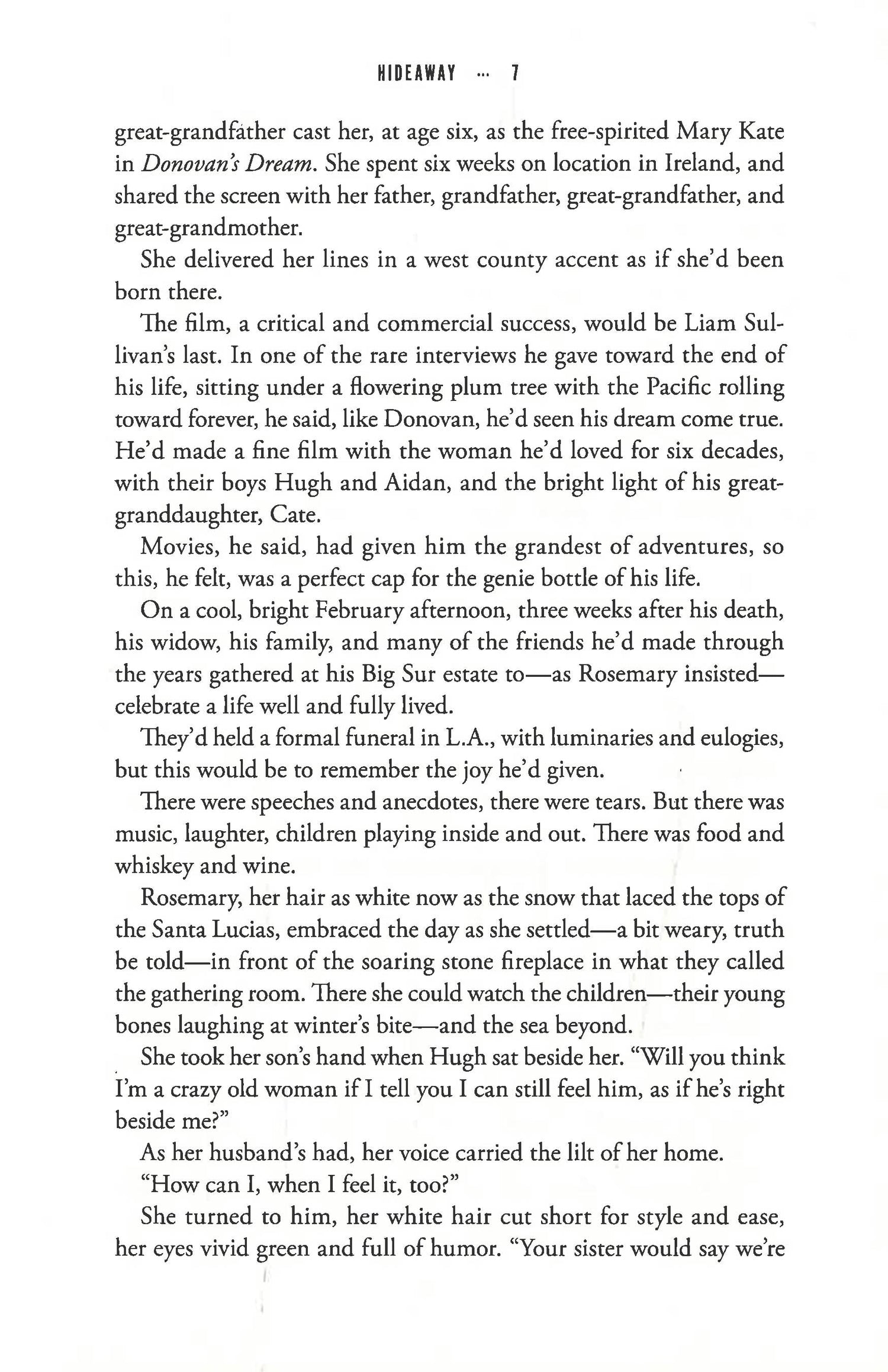 A family ranch in Big Sur country and a legacy of Hollywood royalty set the stage for Nora Roberts’ emotional new suspense novel, Hideaway.