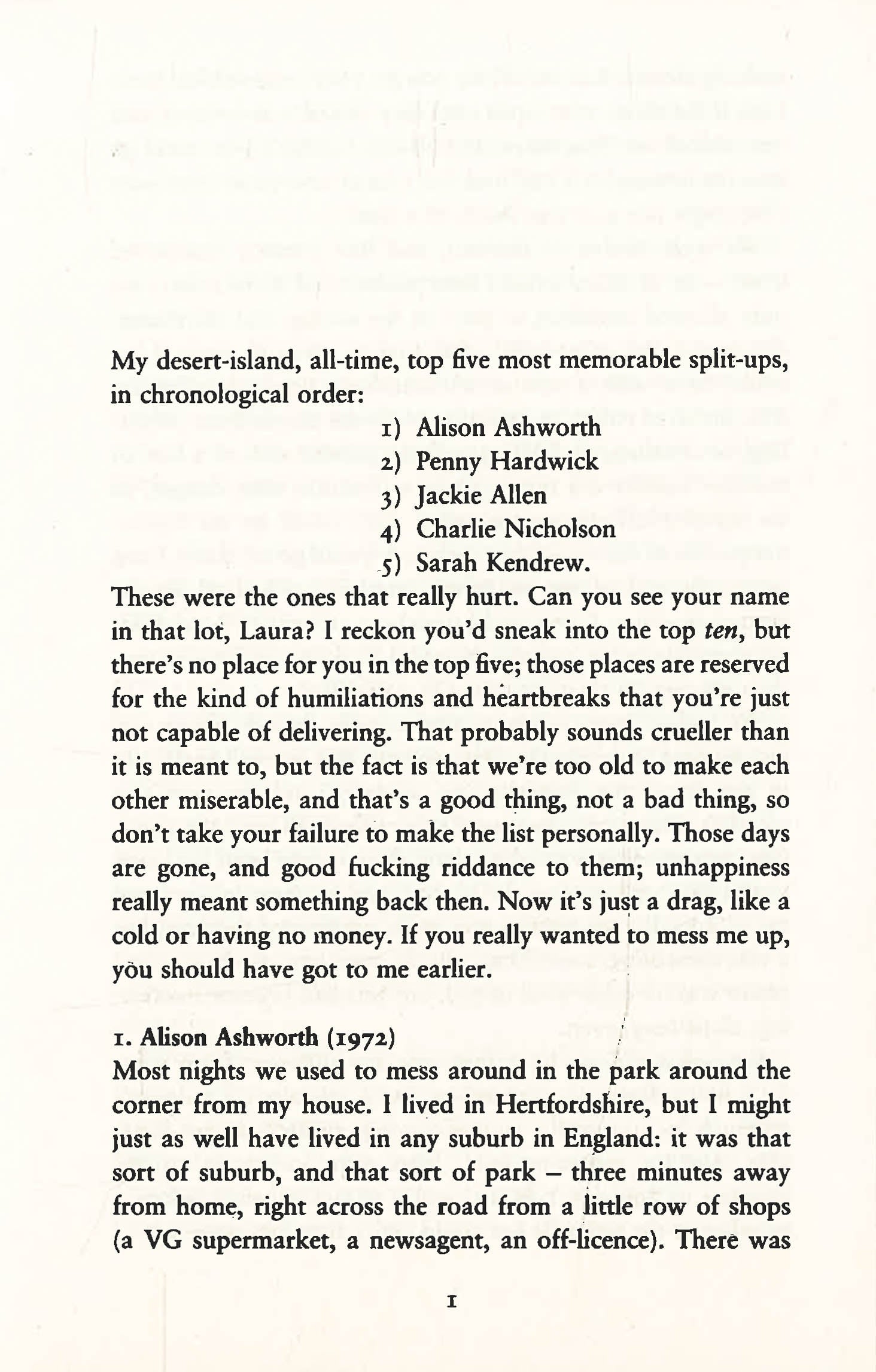 But Laura isn't on it - even though she's just become his latest ex. He's got his life back, you see. He can just do what he wants when he wants: like listen to whatever music he likes, look up the girls that are on his list, and generally behave as if Laura never mattered.