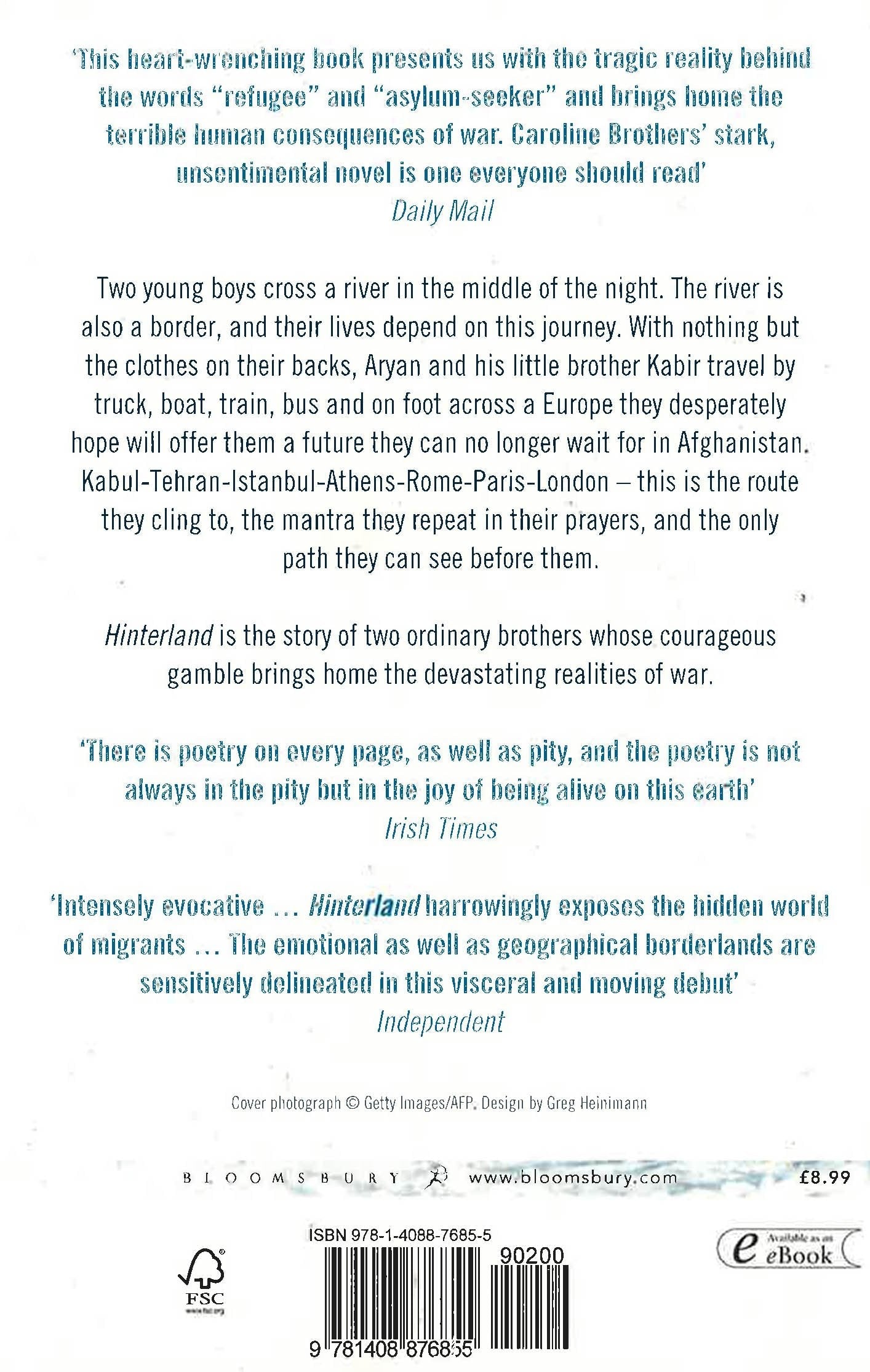 Two young boys cross a river in the middle of the night. The river is also a border, and their lives depend on this journey. With nothing but the clothes on their backs, Aryan and his little brother Kabir travel by truck, boat, train, bus and on foot across a Europe they desperately hope will offer them a future they can no longer wait for in Afghanistan. Kabul-Tehran-Istanbul-Athens-Rome-Paris-London--this is the route they cling to, the mantra they repeat in their prayers, and the only option they can see before them.Hinterland is the story of two ordinary brothers whose courageous gamble brings home the devastating human consequences of war.