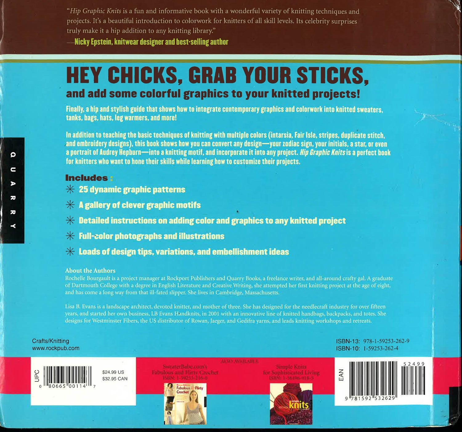 25 clever and unique graphic knitting patterns and designs for young knittersGraphic knits have a long history, and this type of knitting is quite popular though typically, the designs have been based on traditional old style motifs like snowflakes, leaves, and flowers. This book gives a growing, younger, experimental audience of knitters a great resource of stylish, contemporary graphics, and shows them how to integrate patterns into knitted sweaters, tanks, bags, hats, legwarmers, and more. The book will show how you can convert any design an 8 ball, a palm tree, an Elvis, a heart with an arrow into a knitting pattern, and translate it into a project. The book covers basic techniques, stripes, intarsia, fair isle, duplicate stitch, embroidery and embellishments, and includes a gallery of graphs for cool projects.