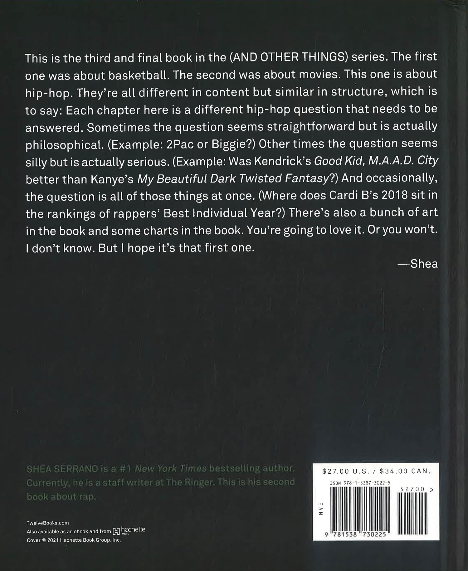 HIP-HOP (AND OTHER THINGS) is the third book in the (And Other Things) series. The first two--Basketball (And Other Things) and Movies (And Other Things)--were both #1 New York Times bestsellers.