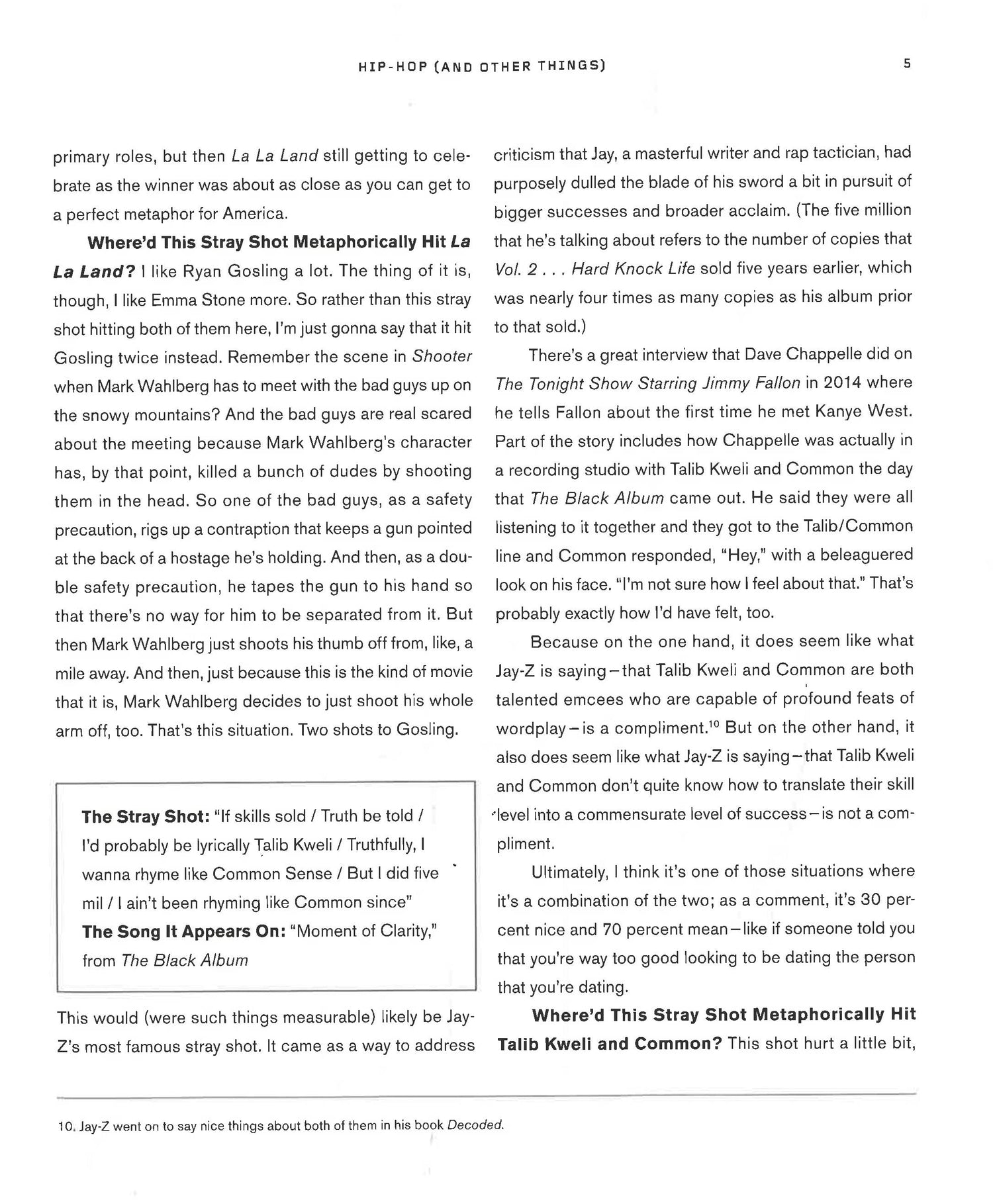 HIP-HOP (AND OTHER THINGS) is about, as it were, rap, but also some other things. It's a smart, fun, funny, insightful book that spends the entirety of its time celebrating what has become the most dominant form of music these past two and a half decades. Tupac is in there. Jay Z is in there. Missy Elliott is in there. Drake is in there. Pretty much all of the big names are in there, as are a bunch of the smaller names, too.