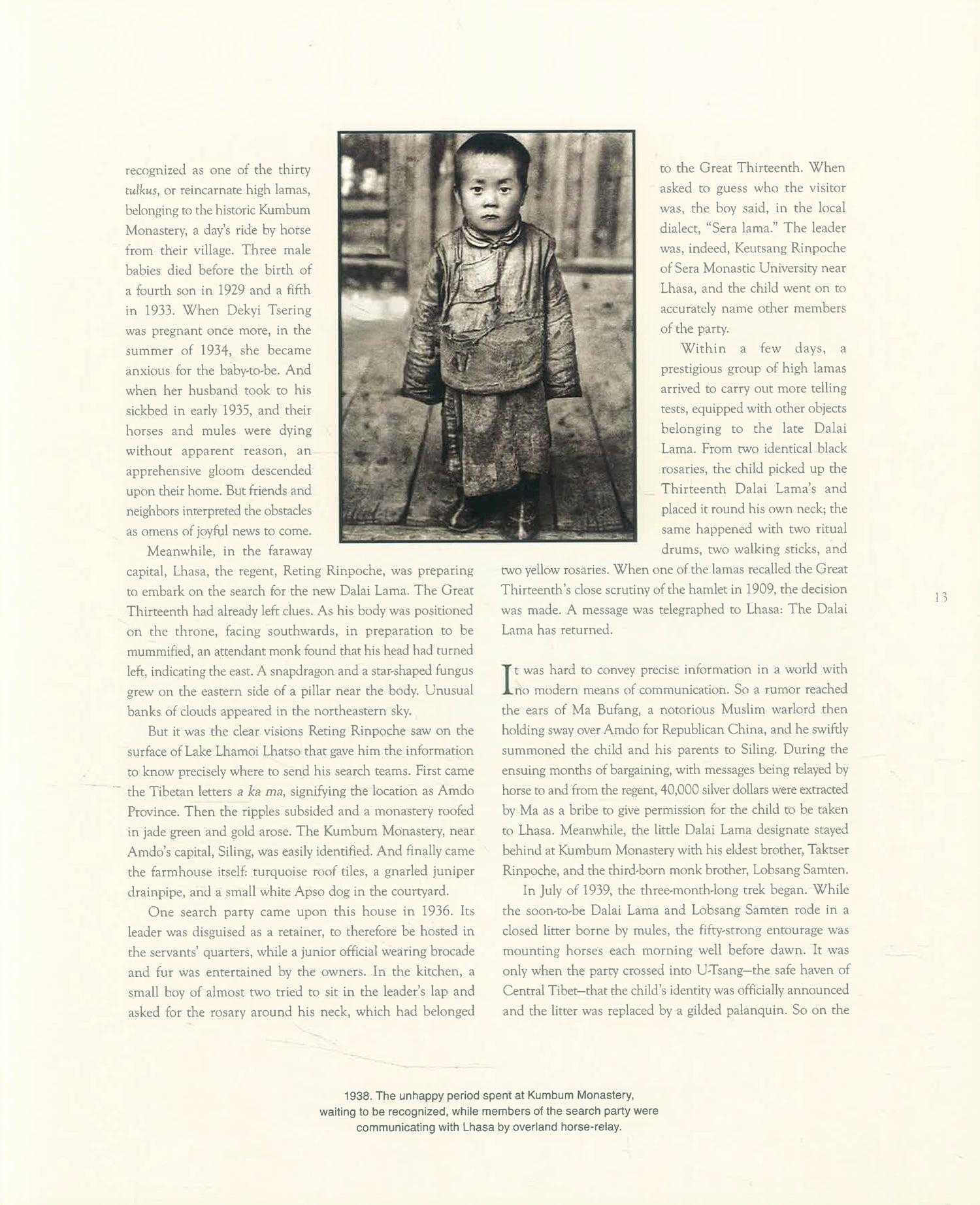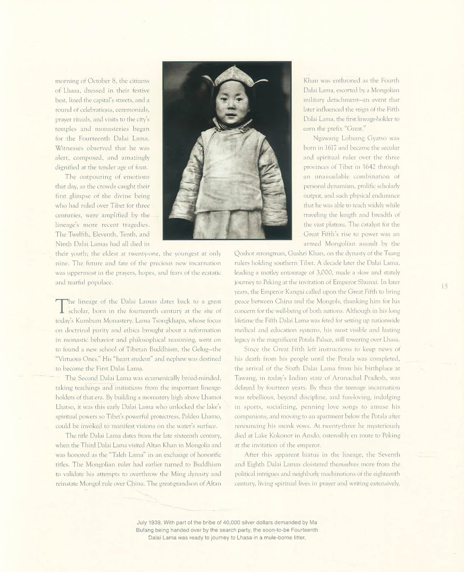 Since the fourteenth Dalai Lama's forced exile from Tibet in 1959, Raghu Rai, one of the world's most famous photographers, has documented his life in India. Now leading Tibetan Buddhists from afar, His Holiness is respected around the world as a pillar of peace and moral strength while he remains separated from his country. Enhanced by historical commentary and archival photos of the Dalai Lama and Tibet, Rai's work follows the spiritual leader's journey from exile through his present worldwide influence in a stunning and intimate photo series.