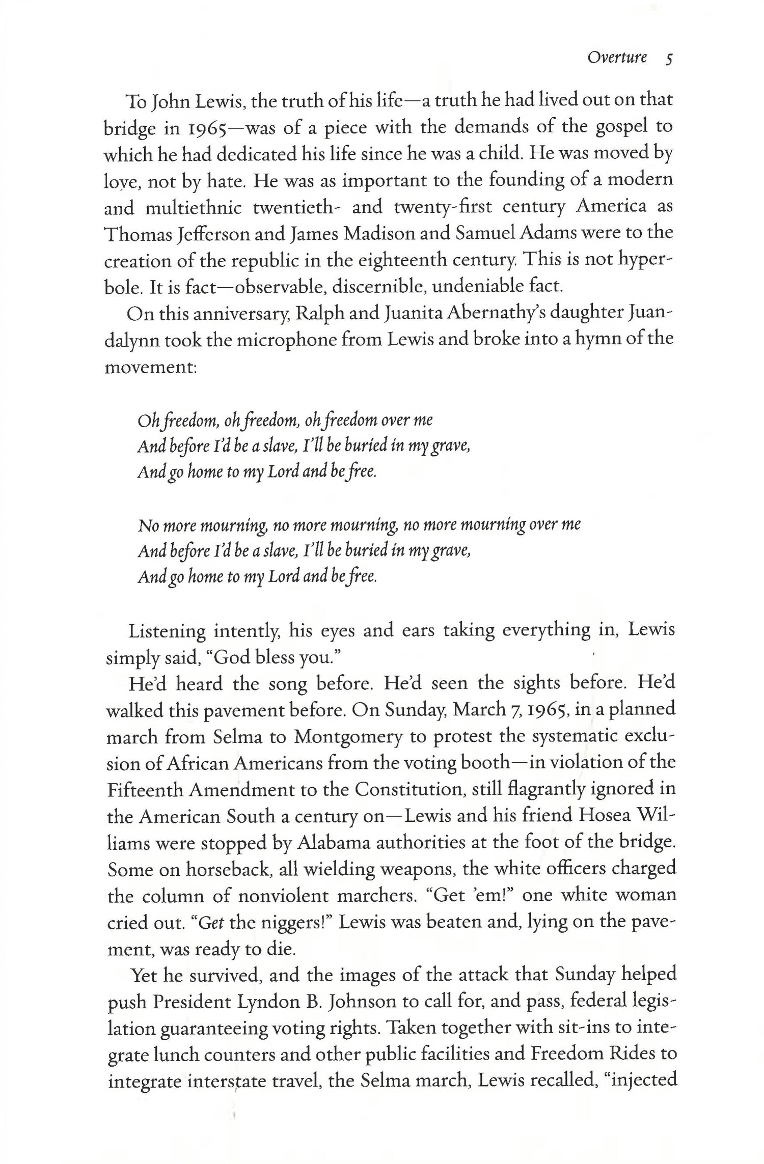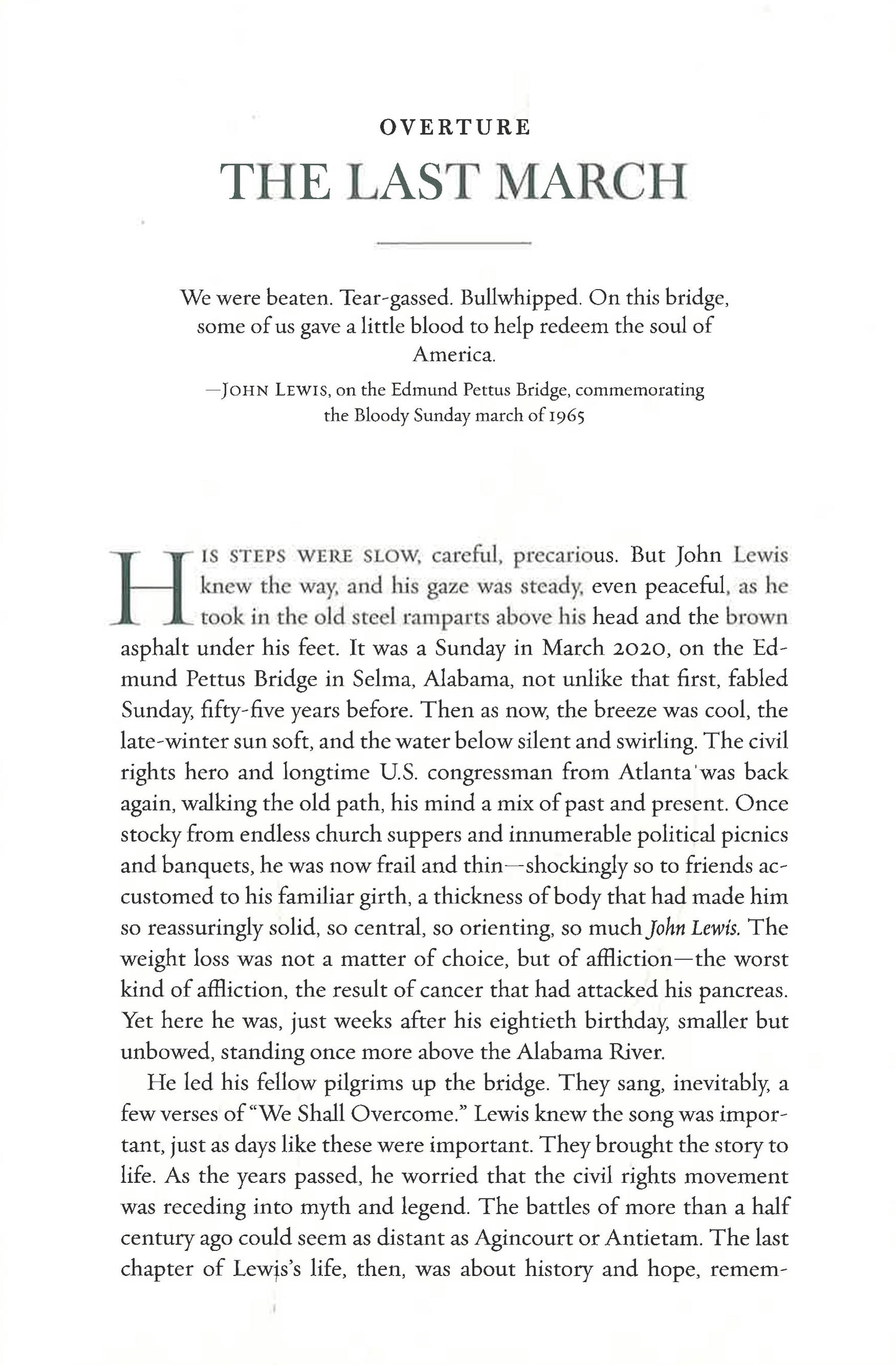 Meacham calls Lewis “as important to the founding of a modern and multiethnic twentieth- and twenty-first-century America as Thomas Jefferson and James Madison and Samuel Adams were to the initial creation of the Republic itself in the eighteenth century.” A believer in the injunction that one should love one's neighbor as oneself, Lewis was arguably a saint in our time, risking limb and life to bear witness for the powerless in the face of the powerful. In many ways he brought a still-evolving nation closer to realizing its ideals, and his story offers inspiration and illumination for Americans today who are working for social and political change.