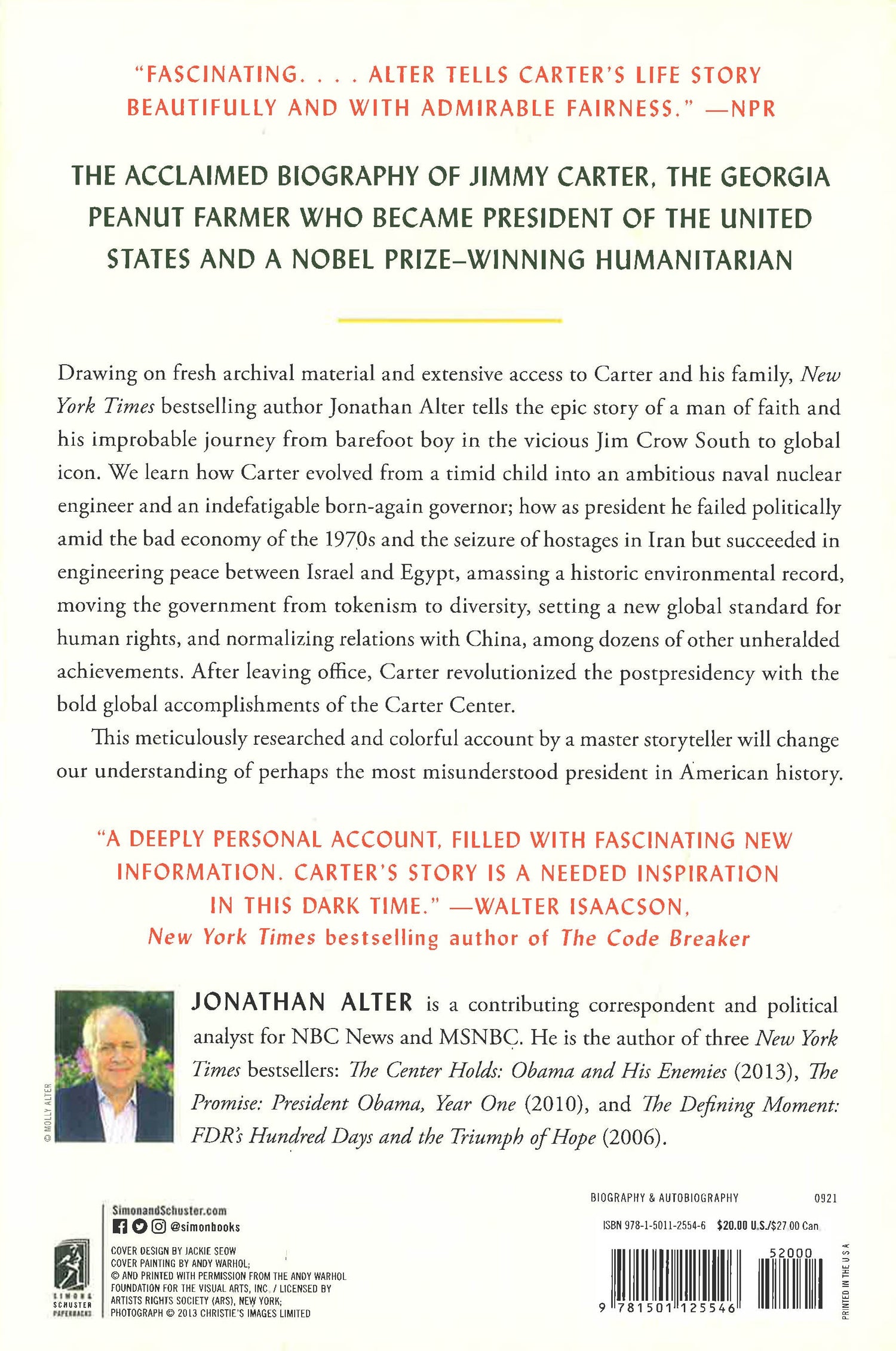 Jonathan Alter tells the epic story of an enigmatic man of faith and his improbable journey from barefoot boy to global icon. Alter paints an intimate and surprising portrait of the only president since Thomas Jefferson who can fairly be called a Renaissance Man, a complex figure—ridiculed and later revered—with a piercing intelligence, prickly intensity, and biting wit beneath the patented smile. Here is a moral exemplar for our times, a flawed but underrated president of decency and vision who was committed to telling the truth to the American people.