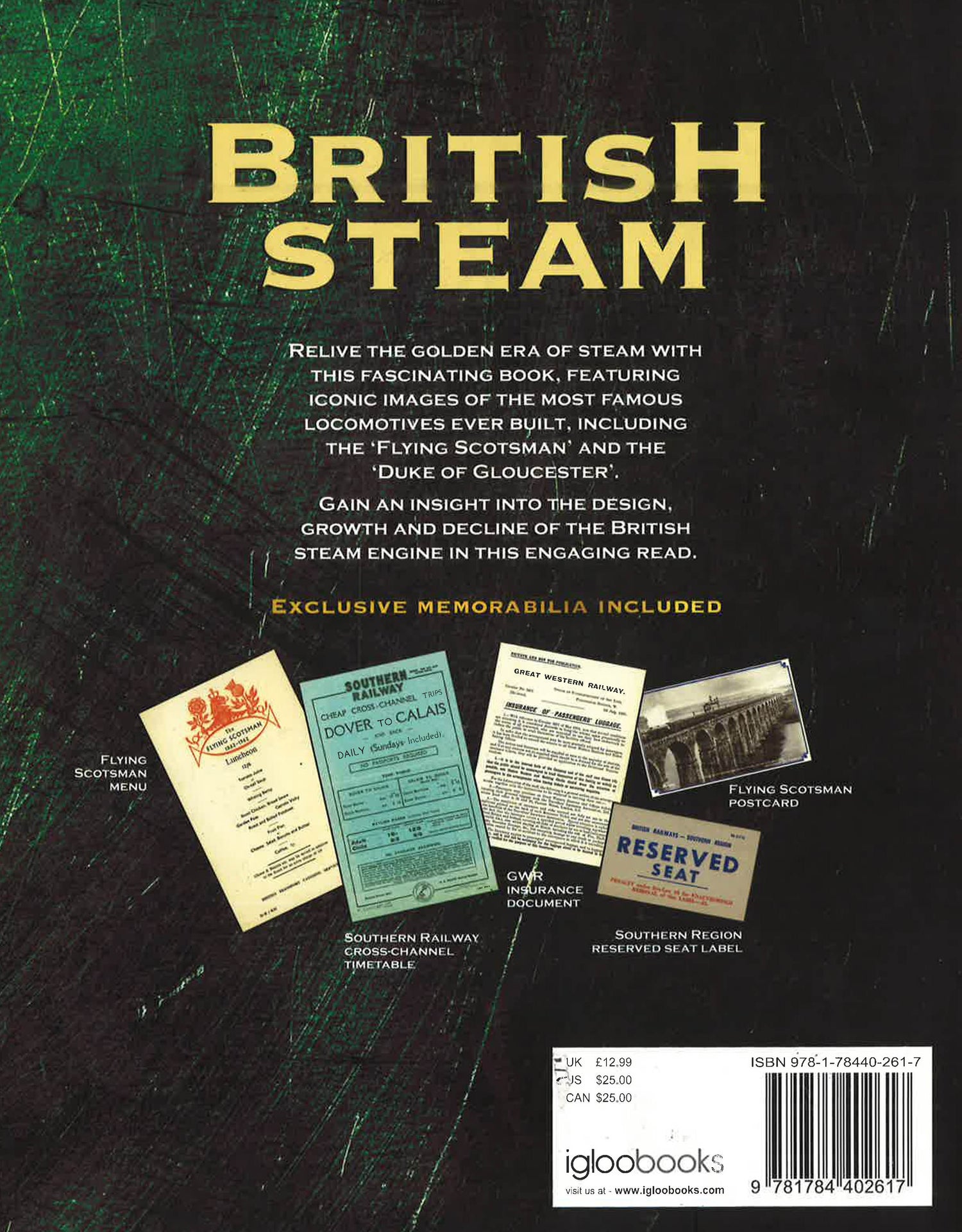 Relive the golden era of the steam train with this fascinating book. Featuring iconic images of the most famous locomotive's ever built. Including The Flying Scotsman and the duke of Gloucester.Gain an insight into the design and growth and the decline of the British steam engine in this engaging read. This fantastic book also contains exclusive memorabilia.
