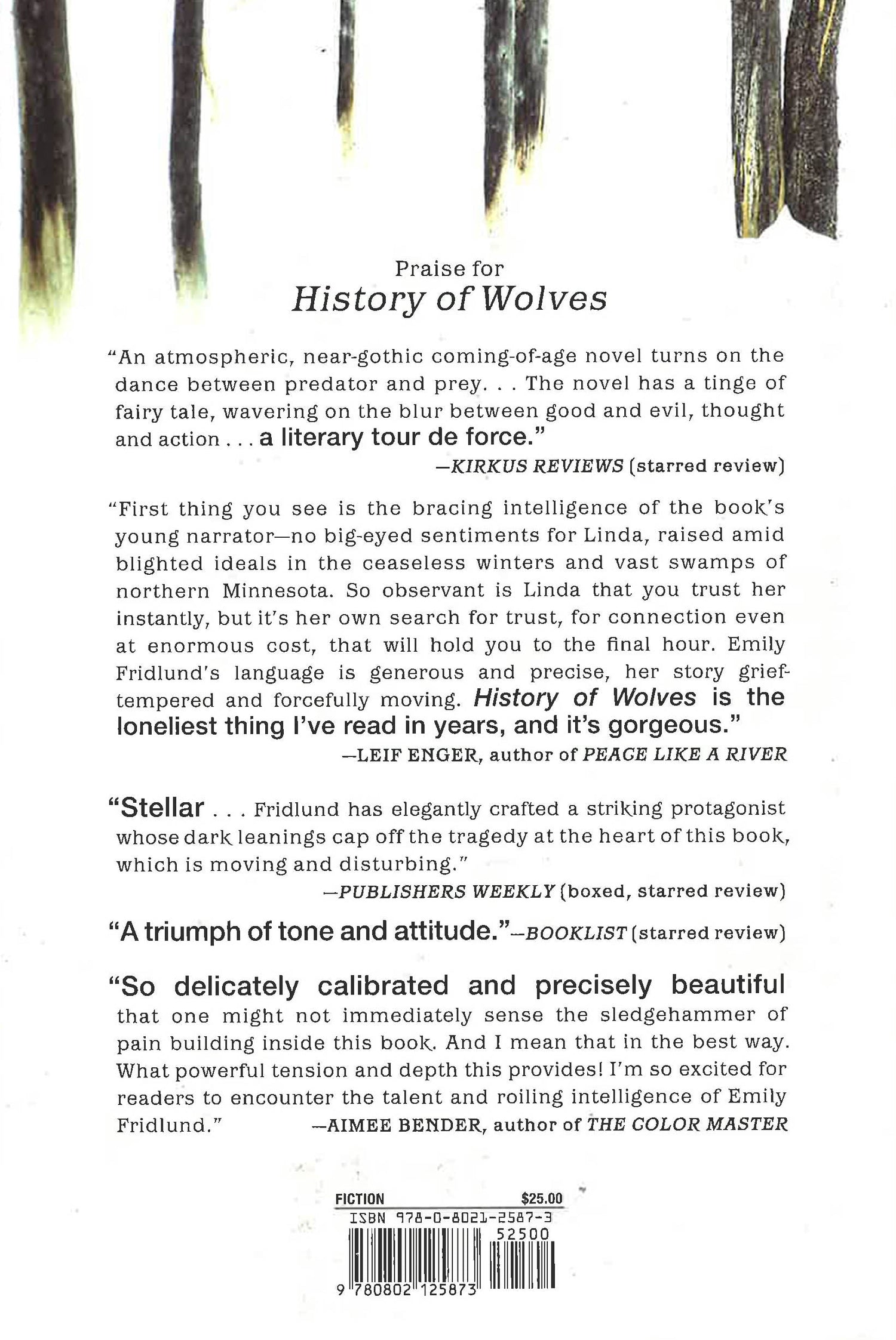 So delicately calibrated and precisely beautiful that one might not immediately sense the sledgehammer of pain building inside this book. And I mean that in the best way. What powerful tension and depth this provides!" Aimee Bender Fourteen-year-old Linda lives with her parents in the beautiful, austere woods of northern Minnesota, where their nearly abandoned commune stands as a last vestige of a lost counter-culture world. Isolated at home and an outlander at school, Linda is drawn to the enigmatic, attractive Lily and new history teacher Mr. Grierson. When Mr. Grierson is charged with possessing child pornography, the implications of his arrest deeply affect Linda as she wrestles with her own fledgling desires and craving to belong. And then the young Gardner family moves in across the lake and Linda finds herself welcomed into their home as a babysitter for their little boy, Paul. It seems that her life finally has purpose but with this new sense of belonging she is also drawn into secrets she doesn't understand. Over the course of a few days, Linda makes a set of choices that reverberate throughout her life. As she struggles to find a way out of the sequestered world into which she was born, Linda confronts the life-and-death consequences of the things people do and fail to do for the people they love. Winner of the McGinnis-Ritchie award for its first chapter, Emily Fridlund's propulsive and gorgeously written History of Wolves introduces a new writer of enormous range and talent.