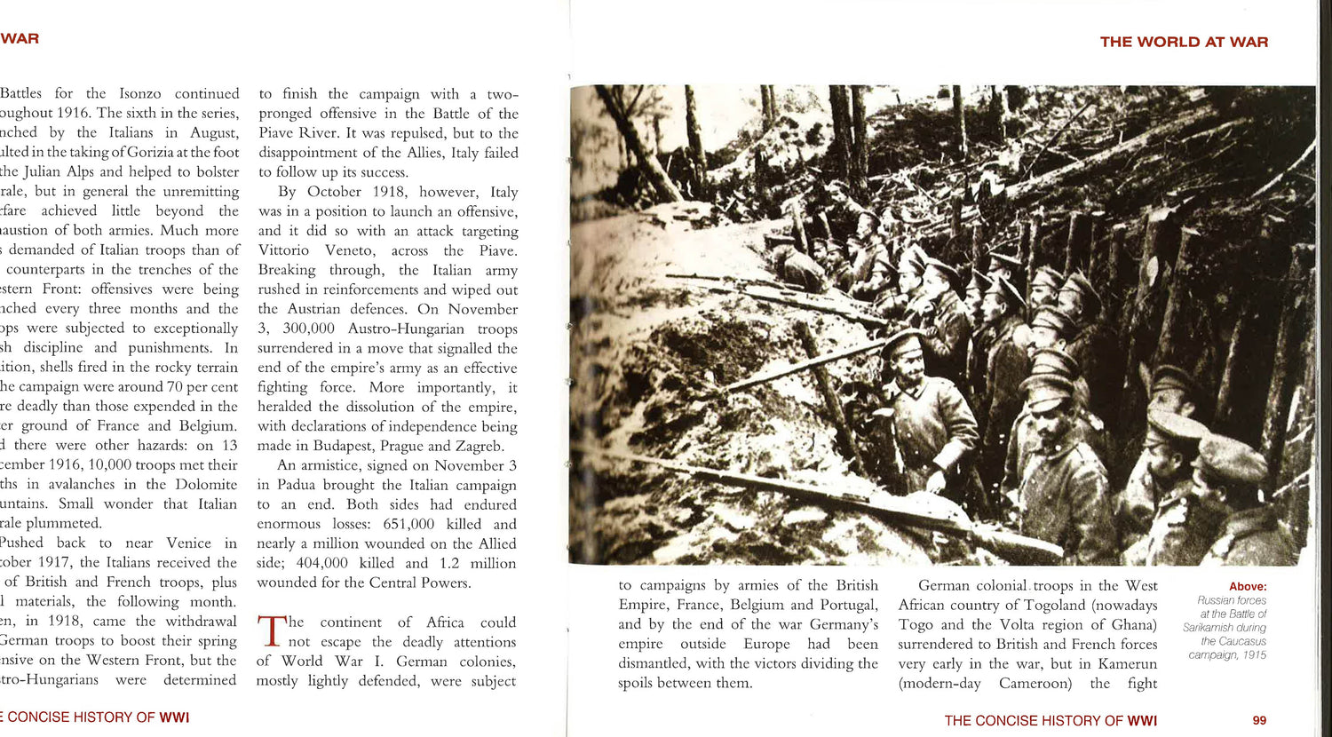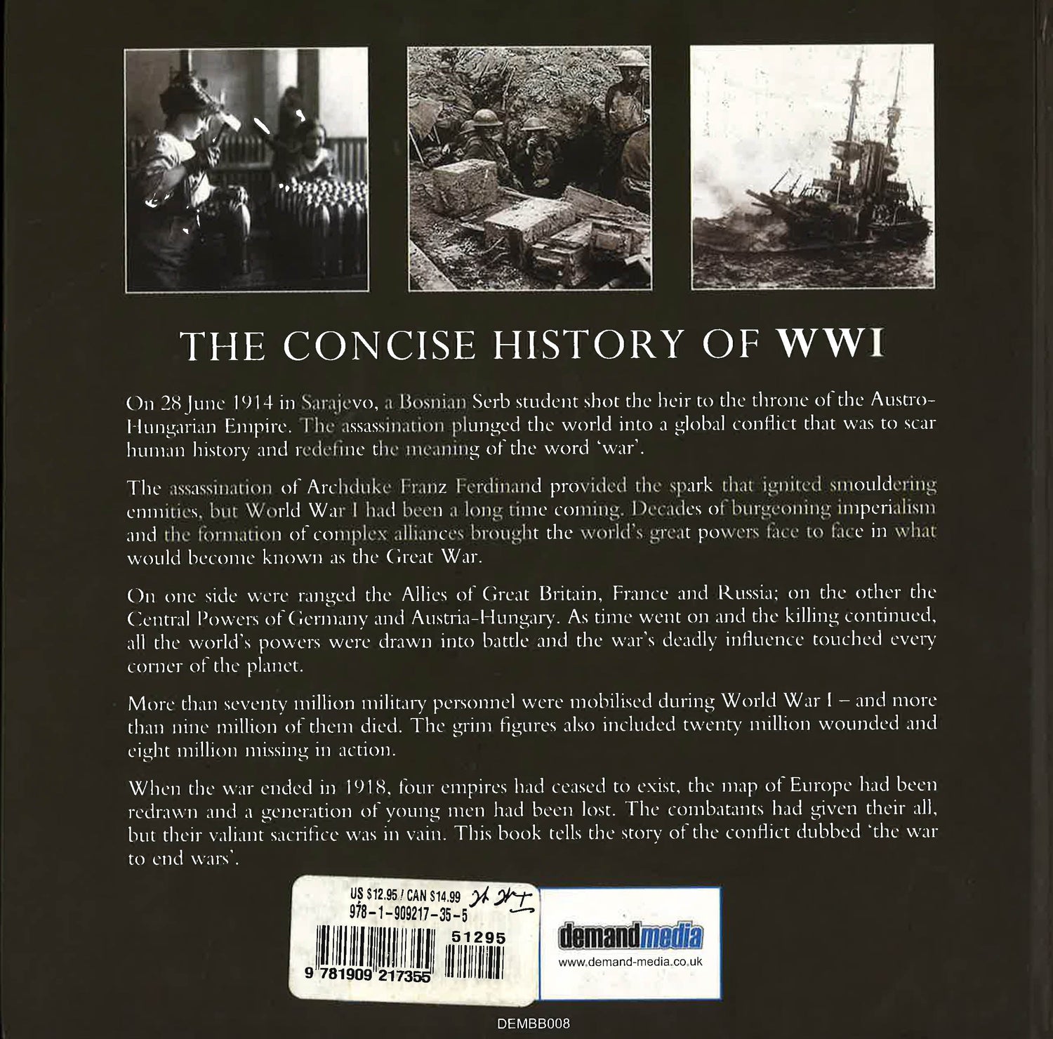 In 1914 the world engaged in global conflict that was to scar human history and redefine the meaning of the word "war". Known as the Great War, decades of burgeoning imperialism and the formation of complex alliances brought the world's great powers face to face in conflict on a hitherto unprecedented scale. When the war ended in 1918, four empires had ceased to exist, the map of Europe had been redrawn and a generation of young men had been lost. This book tells the story of the conflict dubbed "the war to end all wars."