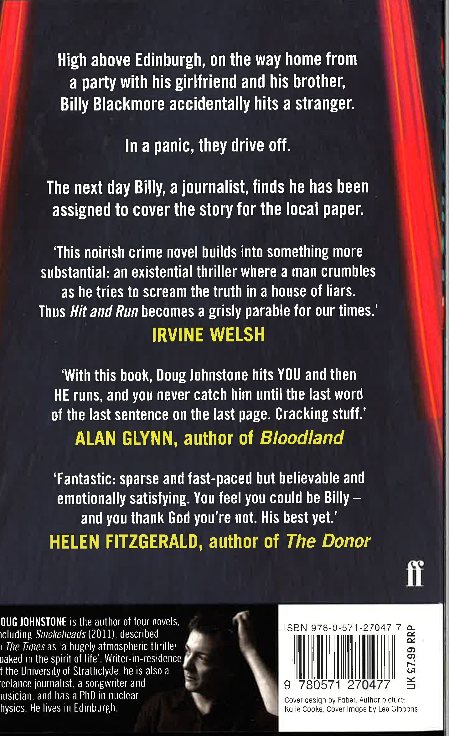 Driving home from a party with his girlfriend and brother, all of them drunk and high on stolen pills, Billy Blackmore accidentally hits someone in the night. In a panic, they all decide to drive off. But the next day Billy wakes to find he has to cover the story for the local paper. It turns out the dead man was Edinburgh's biggest crime lord and, as Billy struggles with what he's done, he is sucked into a nightmare of guilt, retribution and violence. From the author of the acclaimed Smokeheads, Hit & Run is another pitch-black psychological thriller.