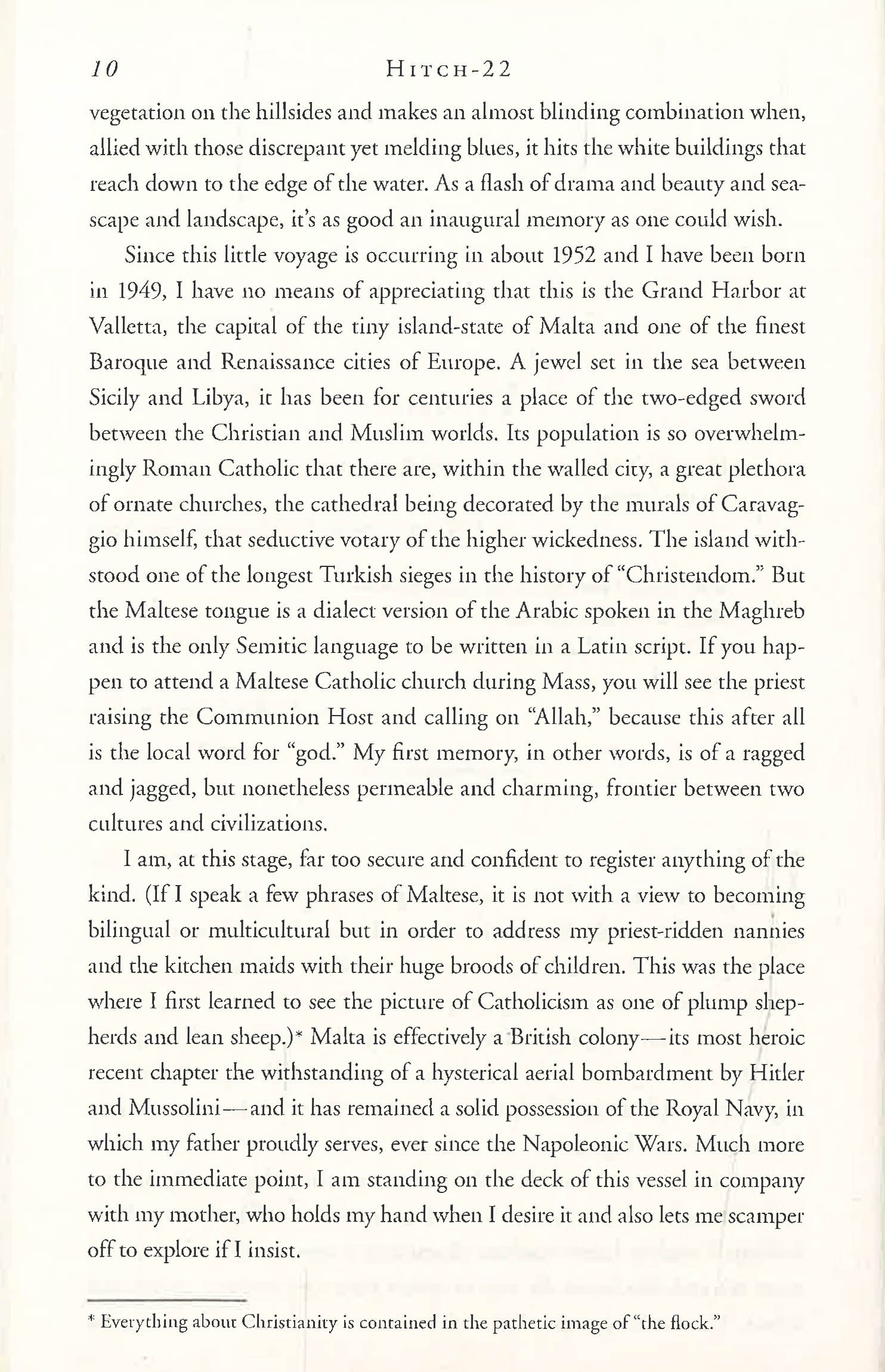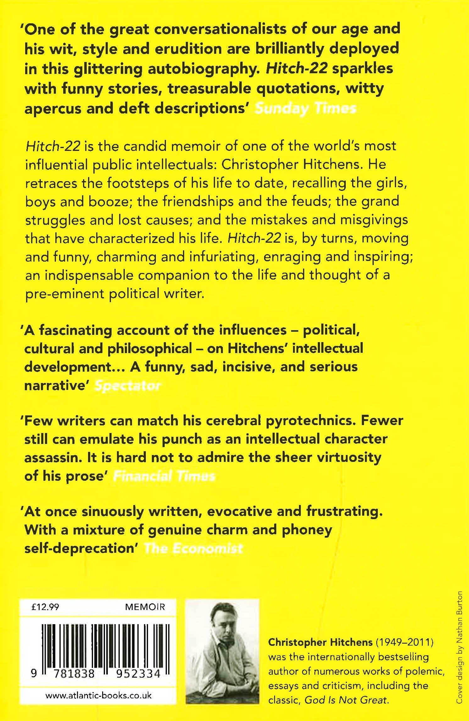 Nominated for the National Book Critics Circle AwardIn this long-awaited and candid memoir, Hitchens re-traces the footsteps of his life to date, from his childhood in Portsmouth, with his adoring, tragic mother and reserved Naval officer father; to his life in Washington DC, the base from which from he would launch fierce attacks on tyranny of all kinds. Along the way, he recalls the girls, boys and booze; the friendships and the feuds; the grand struggles and lost causes; and the mistakes and misgivings that have characterised his life.Hitch-22 is, by turns, moving and funny, charming and infuriating, enraging and inspiring. It is an indispensable companion to the life and thought of our pre-eminent political writer.