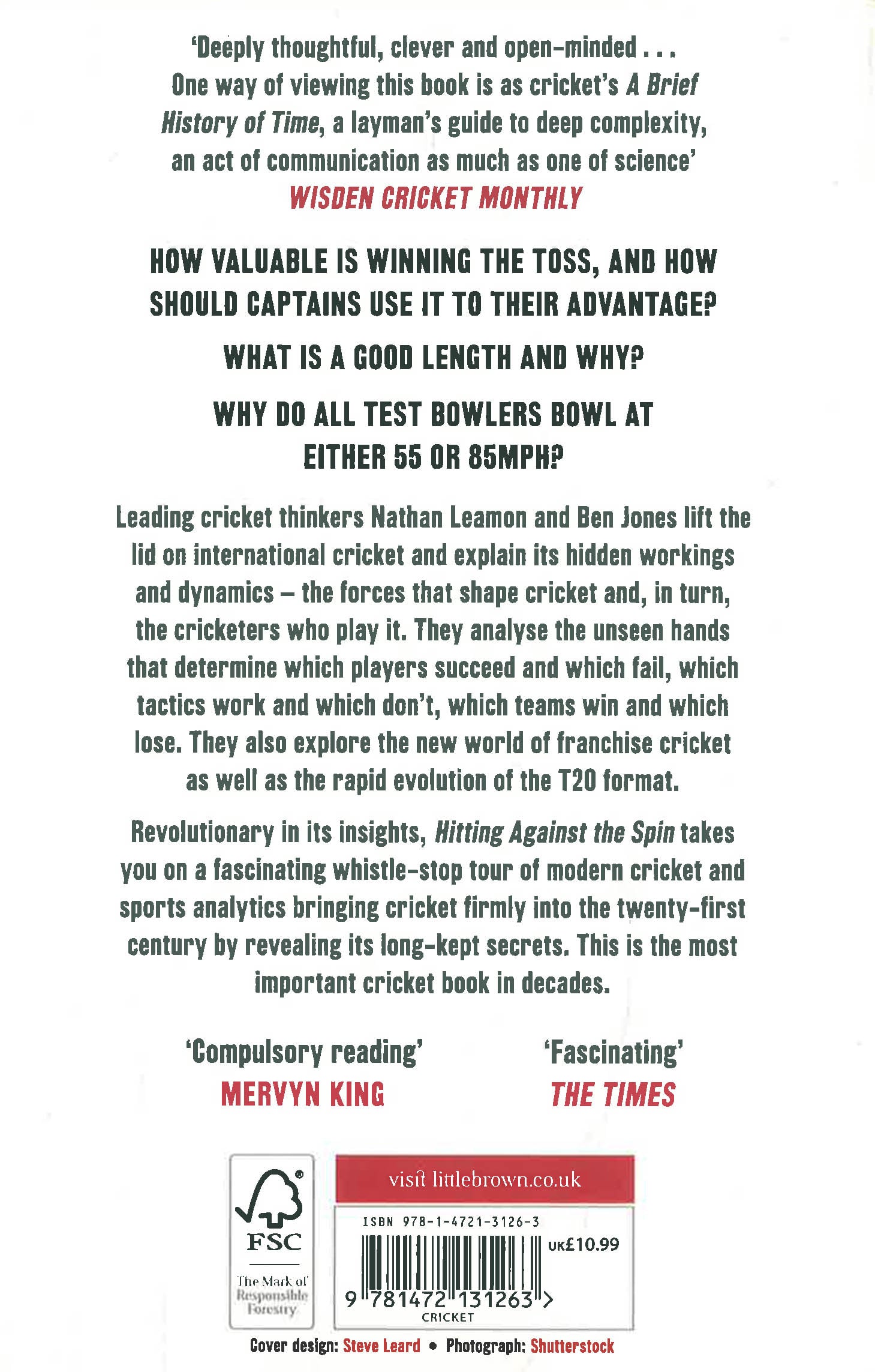 How valuable is winning the toss? And how should captains use it to their advantage? Why does a cricket ball swing? Why don't Indians bat left-handed? What is a good length and why? Why are leg-spinners so successful in T20 cricket? Why did England win the World Cup? Why do all Test bowlers bowl at either 55 or 85mph? Why don't they pitch it up? All cricketers long to know the answer to these questions and many more. Only fifteen years ago it would have been difficult to answer them - cricket was guided only by decades-old tradition and received wisdom. Data has changed everything. Today we can track every ball to within millimetres; its release point, speed and bounce point are measured as are how much the ball swings, how much it deviates off the pitch, the exact height and line that it passes the stumps, and multiple other variables. Hitting Against the Spin is the story of that data, and what it can tell us about how cricket really works.