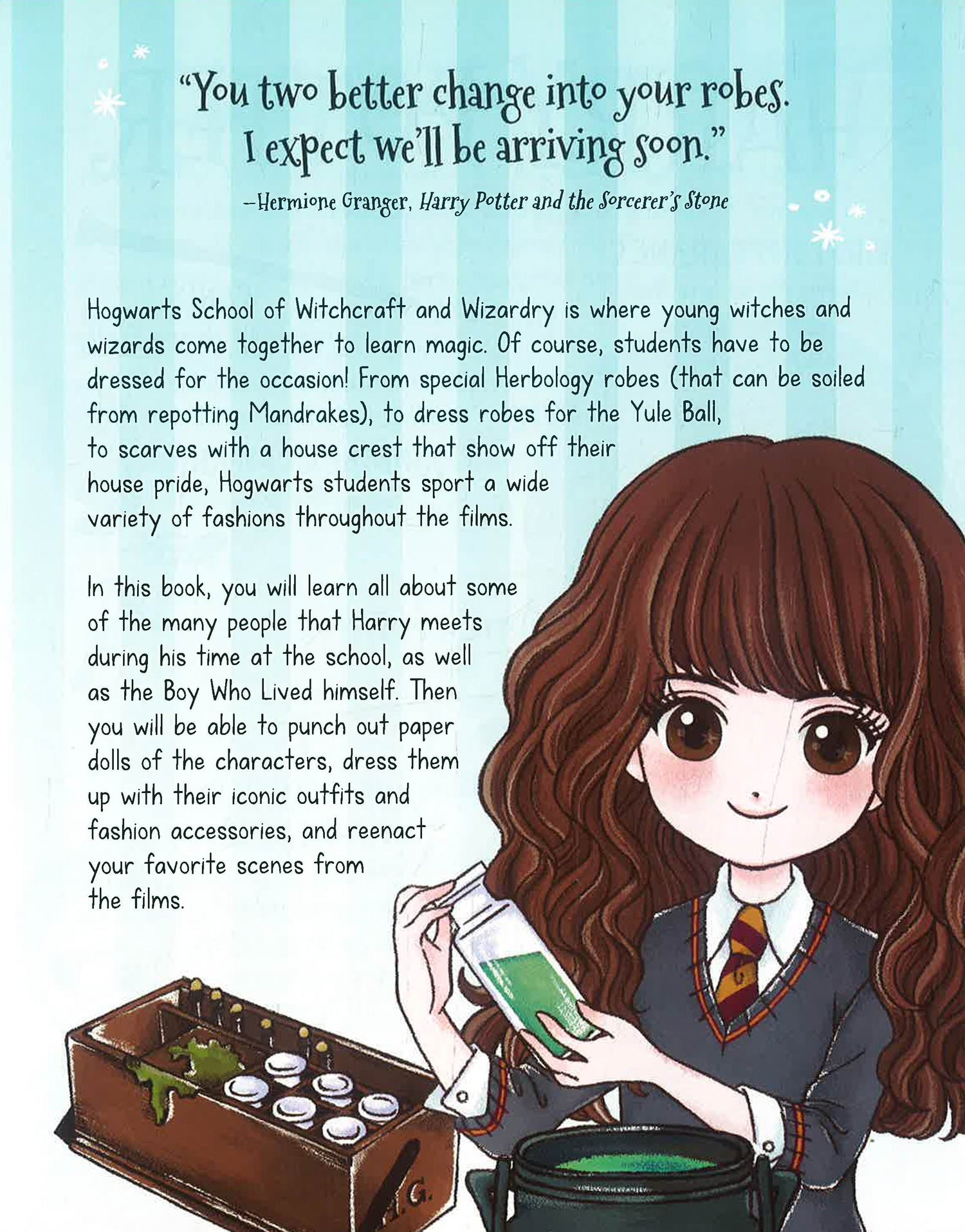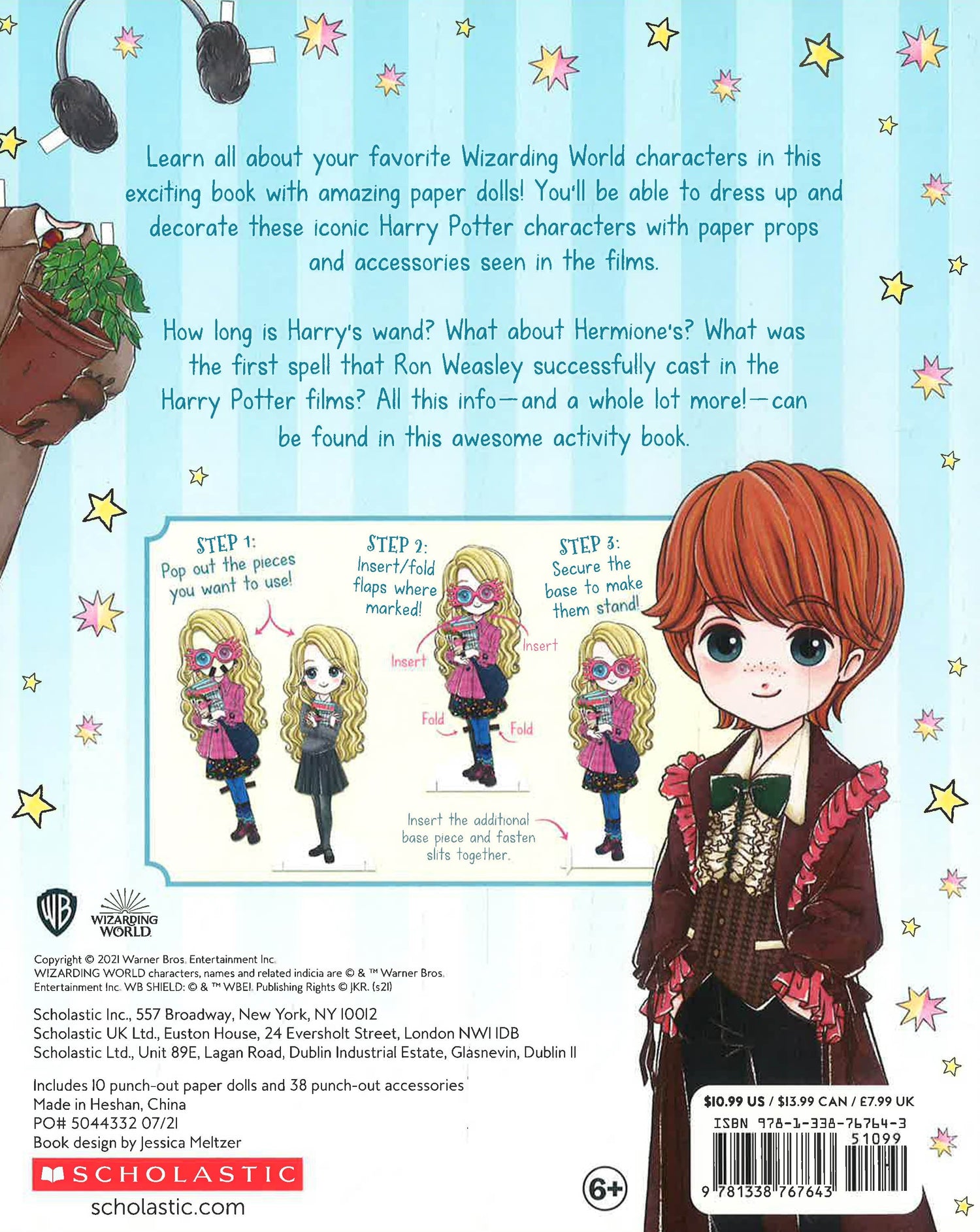 Have fun dressing up, accessorising and learning about the props in the Harry Potter films in this gorgeous book that includes 10 paper characters! Learn all about your favourite Wizarding World characters in this exciting book with amazing paper doll characters! Dolls include: Harry Potter Ron Weasley Hermione Granger Draco Malfoy Luna Lovegood Cho Chang Ginny Weasley and more. You'll be able to dress up and decorate these iconic Harry Potter characters with paper props and accessories as seen in the films. How long is Harry's wand? What about Hermione's? What was the first spell that Ron Weasley successfully cast in the Harry Potter films, and do you know what Luna Lovegood's last word on screen were? All this info - and a whole lot more! - can be found in this awesome activity book.