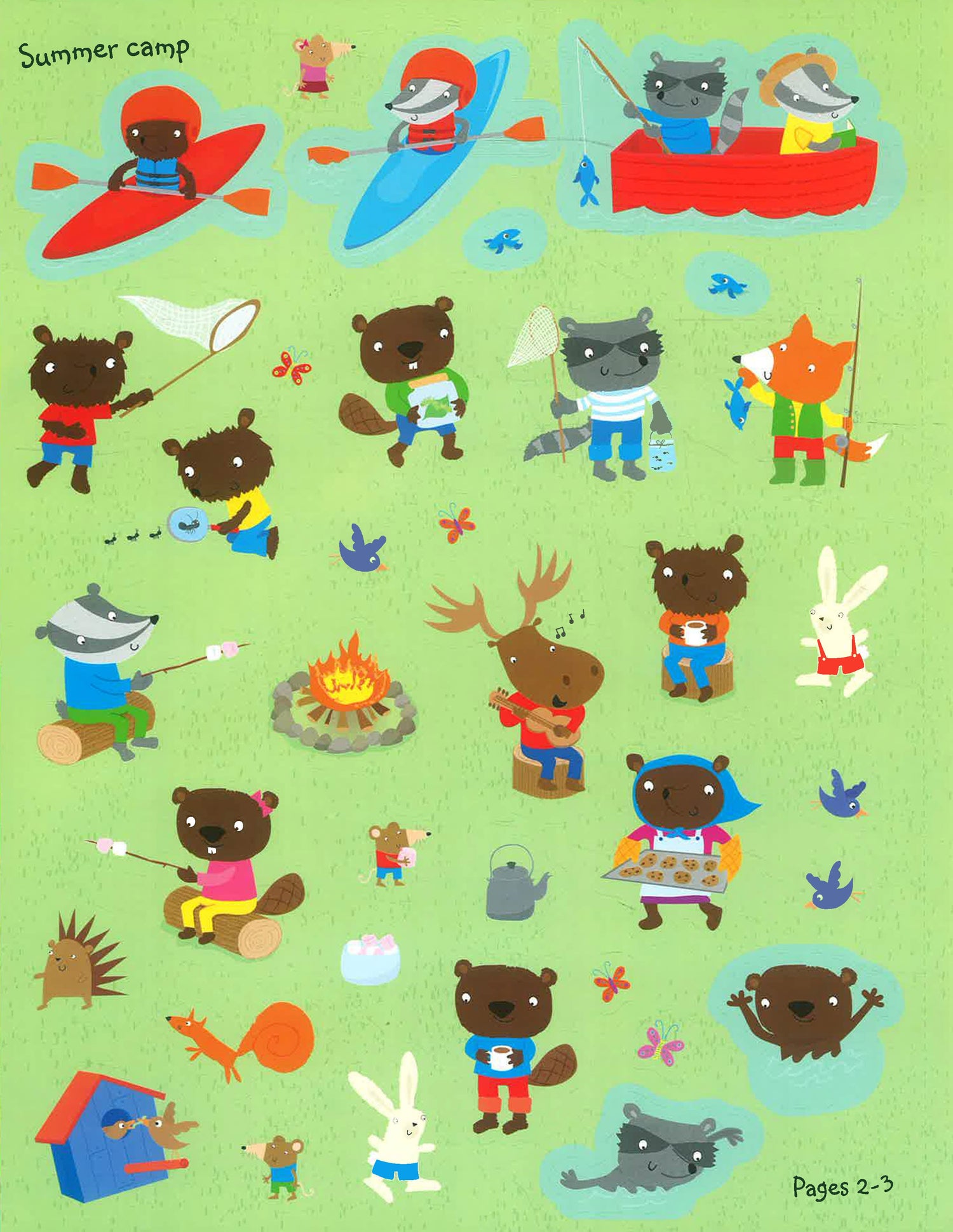 An adventurous sticker book with over 400 colourful stickers to complete the holiday activity scenes. There's surfing at the tropical beach, fishing at summer camp, skiing down a snowy mountain, snorkelling over a coral reef and more. An amusing activity with lots to talk about on journeys and long summer days.