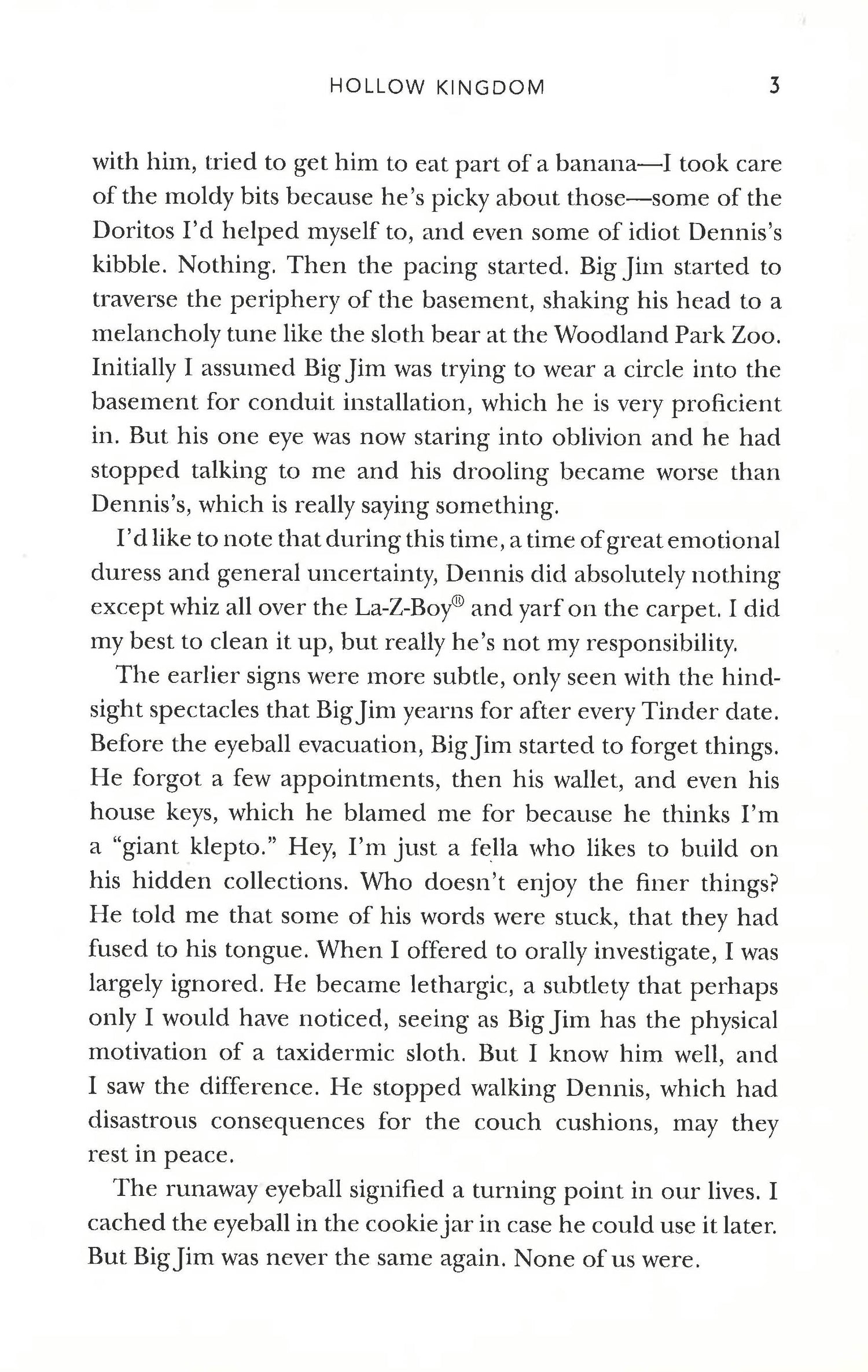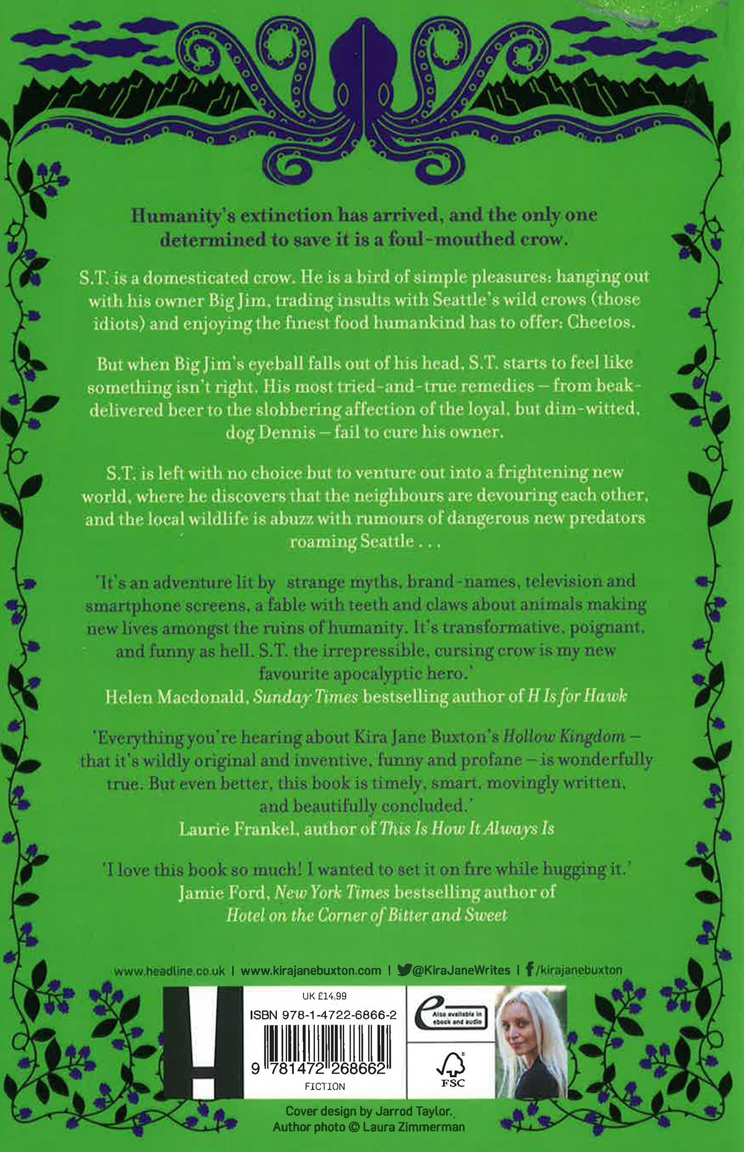 A humorous romp through the apocalypse, where even a cowardly crow can become a hero. Perfect for fans of Dawn of the Dead, Sean of the Dead and Isaac Marion's Warm Bodies.'A thoroughly enjoyable account of the end of the world as we know it. The Secret Life of Pets meets The Walking Dead.' KAREN JOY FOWLERS.T. is a domesticated crow. He is a bird of simple pleasures: hanging out with his owner Big Jim, trading insults with Seattle's wild crows (those idiots) and enjoying the finest food humankind has to offer: Cheetos.But when Big Jim's eyeball falls out of his head, S.T. starts to feel like something isn't right. His most tried-and-true remedies - from beak-delivered beer to the slobbering affection of the loyal, but dim-witted, dog Dennis - fail to cure his owner. S.T. is left with no choice but to venture out into a frightening new world, where he discovers that the neighbours are devouring each other, and the local wildlife is abuzz with rumours of dangerous new predators roaming Seattle... Humanity's extinction has arrived, and the only one determined to save it is a foul-mouthed crow. Readers love Hollow Kingdom...'It's transformative, poignant, and funny as hell. S.T. the irrepressible, cursing crow is my new favourite apocalyptic hero.' HELEN MACDONALD, NEW YORK TIMES BESTSELLING AUTHOR OF H IS FOR HAWK'Part ecological fable and part adventure story, but it's all very good' SCIFI NOW'A quirky zombie apocalypse romp' SFX'A funny and heartwarming book that stays with you long after you finish it' GILL SIMMS, AUTHOR OF WHY MUMMY DRINKS'One of our favourite wacky reads this year' MAGIC BOOK CLUB'A wholesome and humorous tale of unlikely heroism'DAILY EXPRESS 'Funny and sad, Buxton's fable is also full of purpose and meaning, and ultimately hopeful' MORNING STAR'Beguilingly different' BOOKIST (starred review)'...wildly original and inventive, funny and profane' LAURIE FRANKEL, AUTHOR OF THIS IS HOW IT ALWAYS IS'I love this book so much! I wanted to set it on fire while hugging it.' JAMIE FORD, NEW YORK TIMES BESTSELLING AUTHOR