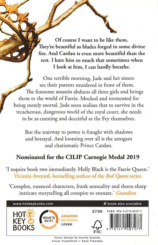 "A dark jewel of a book . intoxicating" - Leigh Bardugo, #1 New York Times bestselling author of Six of CrowsOf course I want to be like them. "A dark jewel of a book . . . intoxicating" - Leigh Bardugo, #1 New York Times bestselling author of Six of Crows Nominated for the CILIP CARNEGIE MEDAL 2019. Winner of the silver INKY for best international YA book. Of course I want to be like them. They're beautiful as blades forged in some divine fire. They will live forever. And Cardan is even more beautiful than the rest. I hate him more than all the others. I hate him so much that sometimes when I look at him, I can hardly breathe. One terrible morning, Jude and her sisters see their parents murdered in front of them. The terrifying assassin abducts all three girls to the world of Faerie, where Jude is installed in the royal court but mocked and tormented by the Faerie royalty for being mortal. As Jude grows older, she realises that she will need to take part in the dangerous deceptions of the fey to ever truly belong. But the stairway to power is fraught with shadows and betrayal. And looming over all is the infuriating, arrogant and charismatic Prince Cardan . . . Dramatic and thrilling fantasy blends seamlessly with enthralling storytelling to create a fully realised and seductive world, brimful of magic and romance.